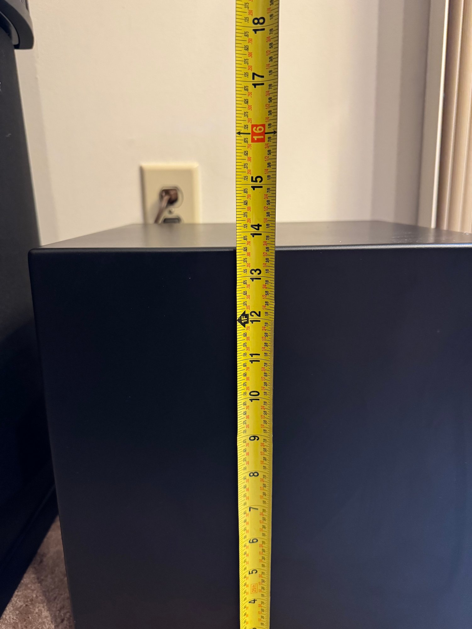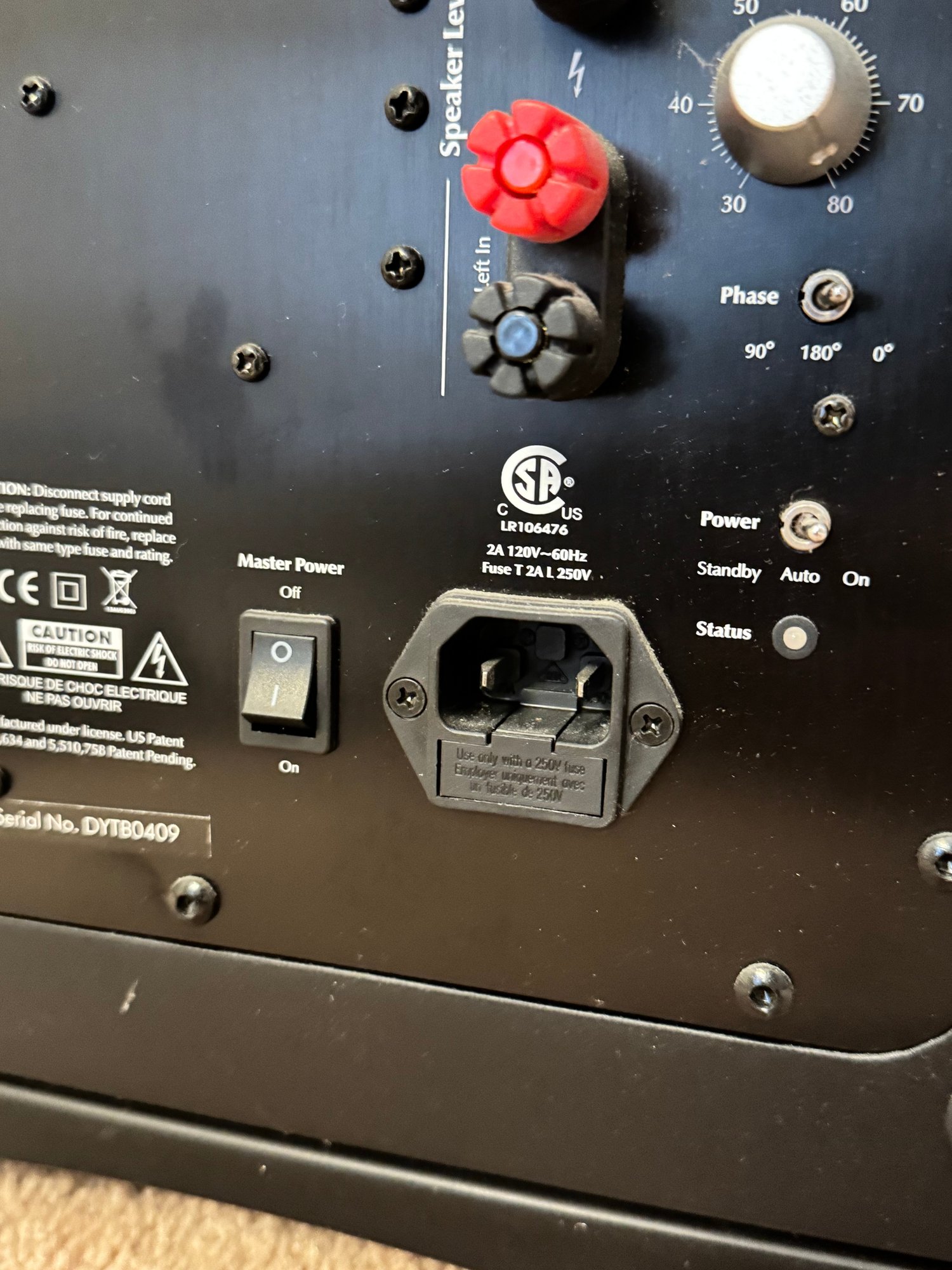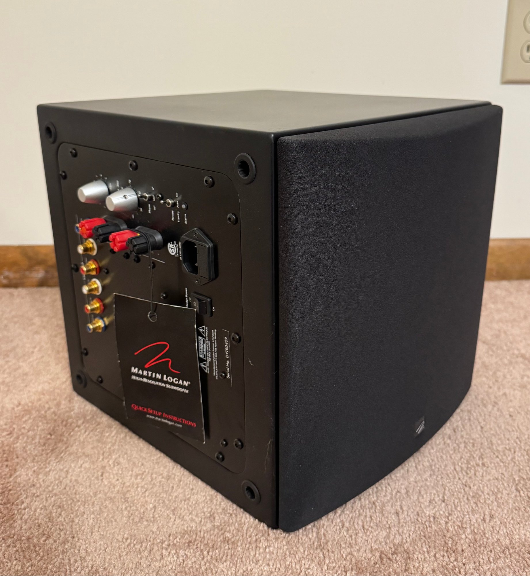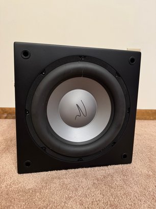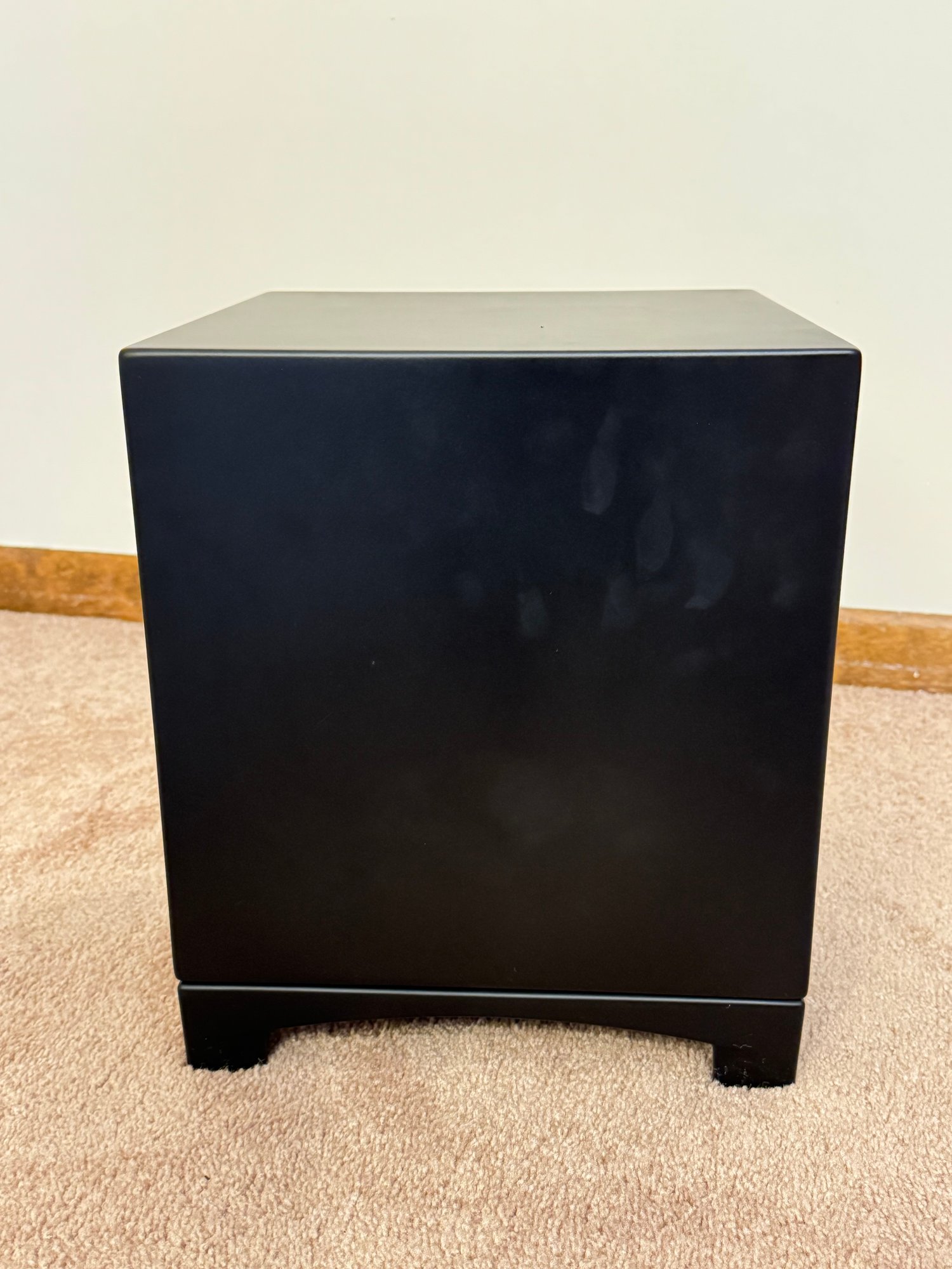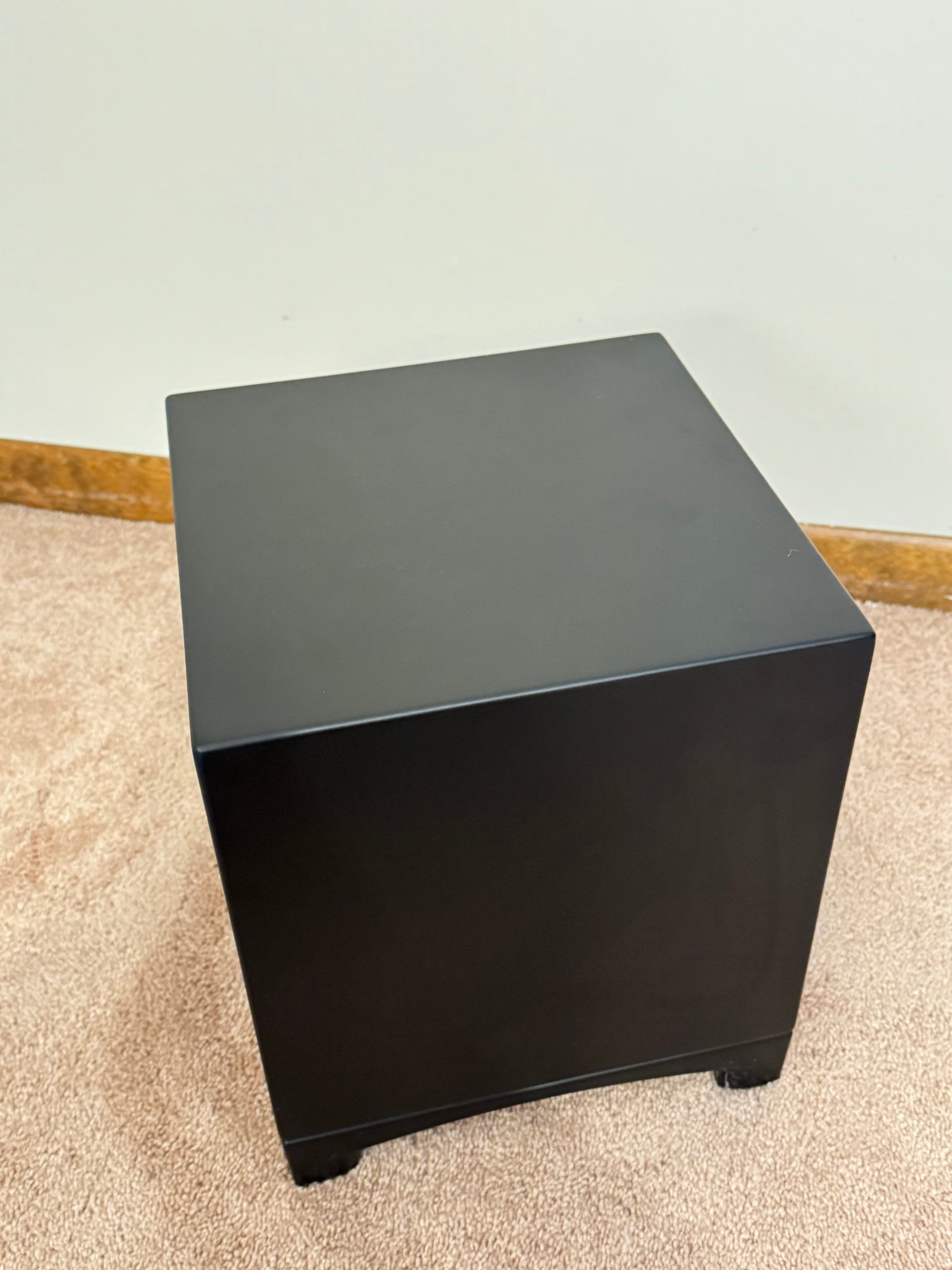 The sub is in good working order and has been very well taken care of. It features a mesh screen that can be swapped out for legs and its serial number is DYTB0409. It measures approximately 13.5” tall with the legs and 12”x12” wide.