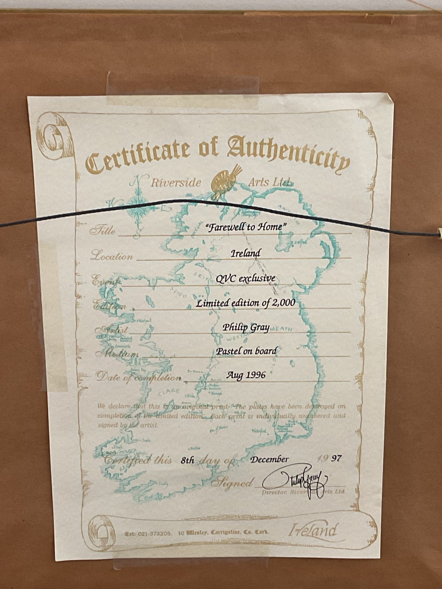 Authentication: Includes the original Certificate of Authenticity from Riverside Arts Ltd on the reverse, dated December 8, 1997.