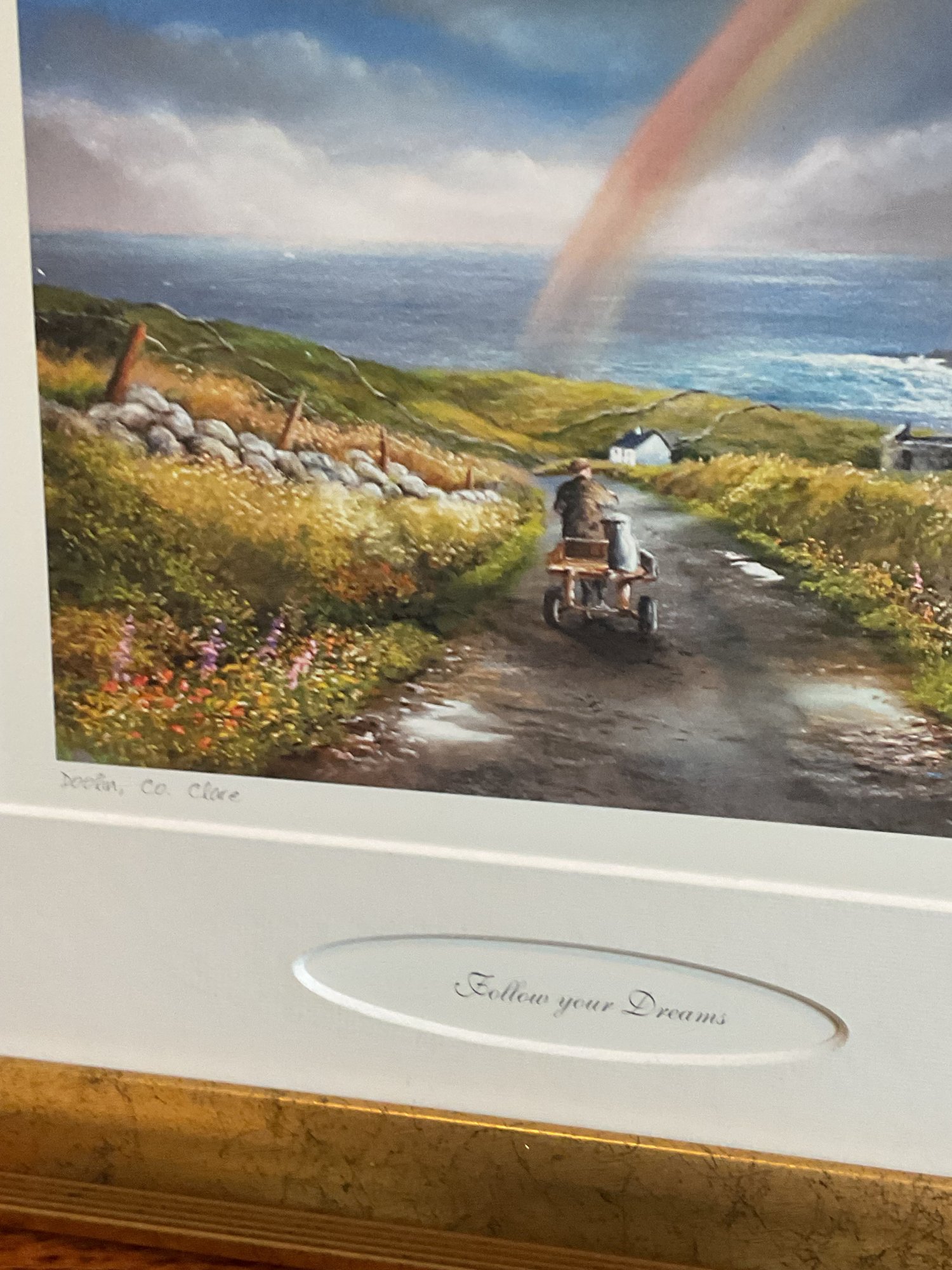 This lot features two charming framed Irish art prints, including a hand-signed piece by renowned Irish artist Philip Gray. Both pieces capture the scenic beauty and sentimental spirit of Ireland, perfect for a gallery wall or as a thoughtful gift.