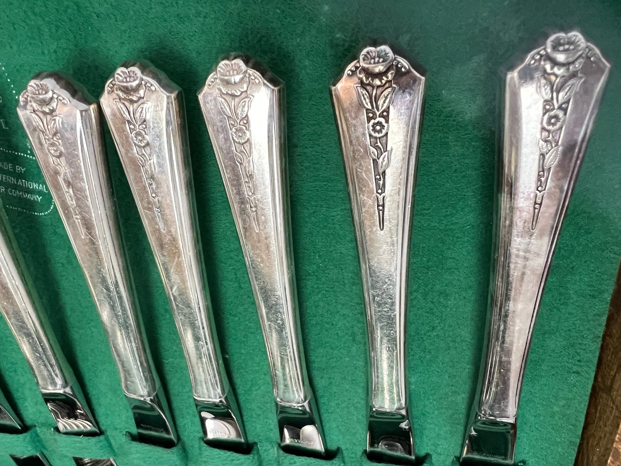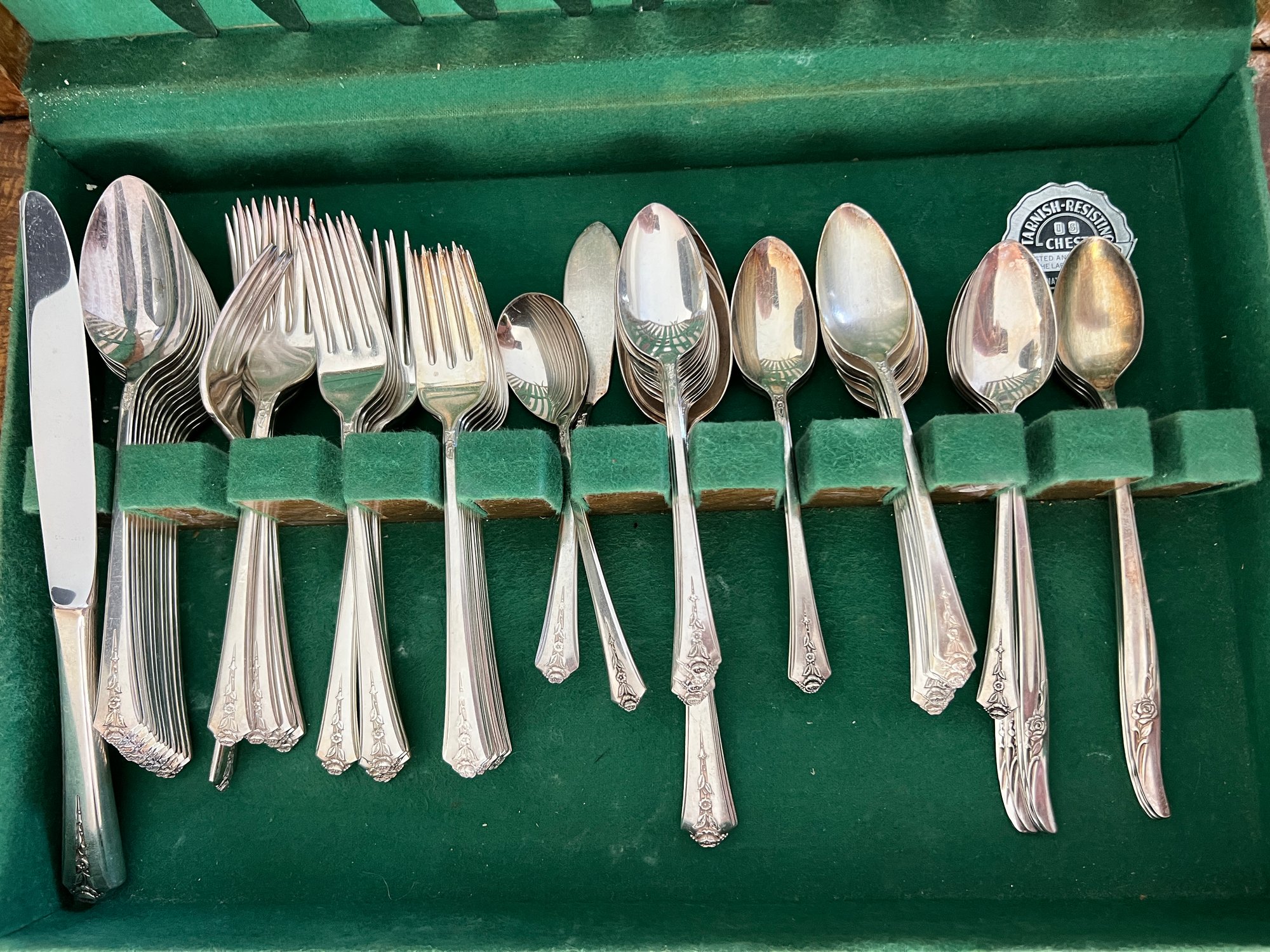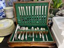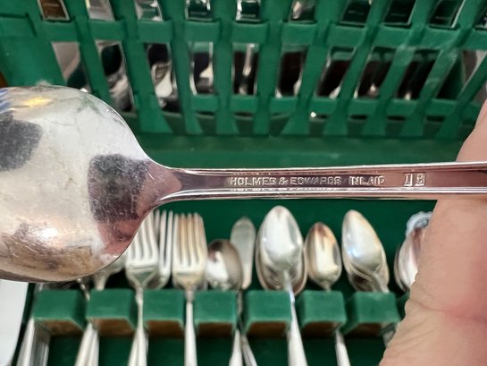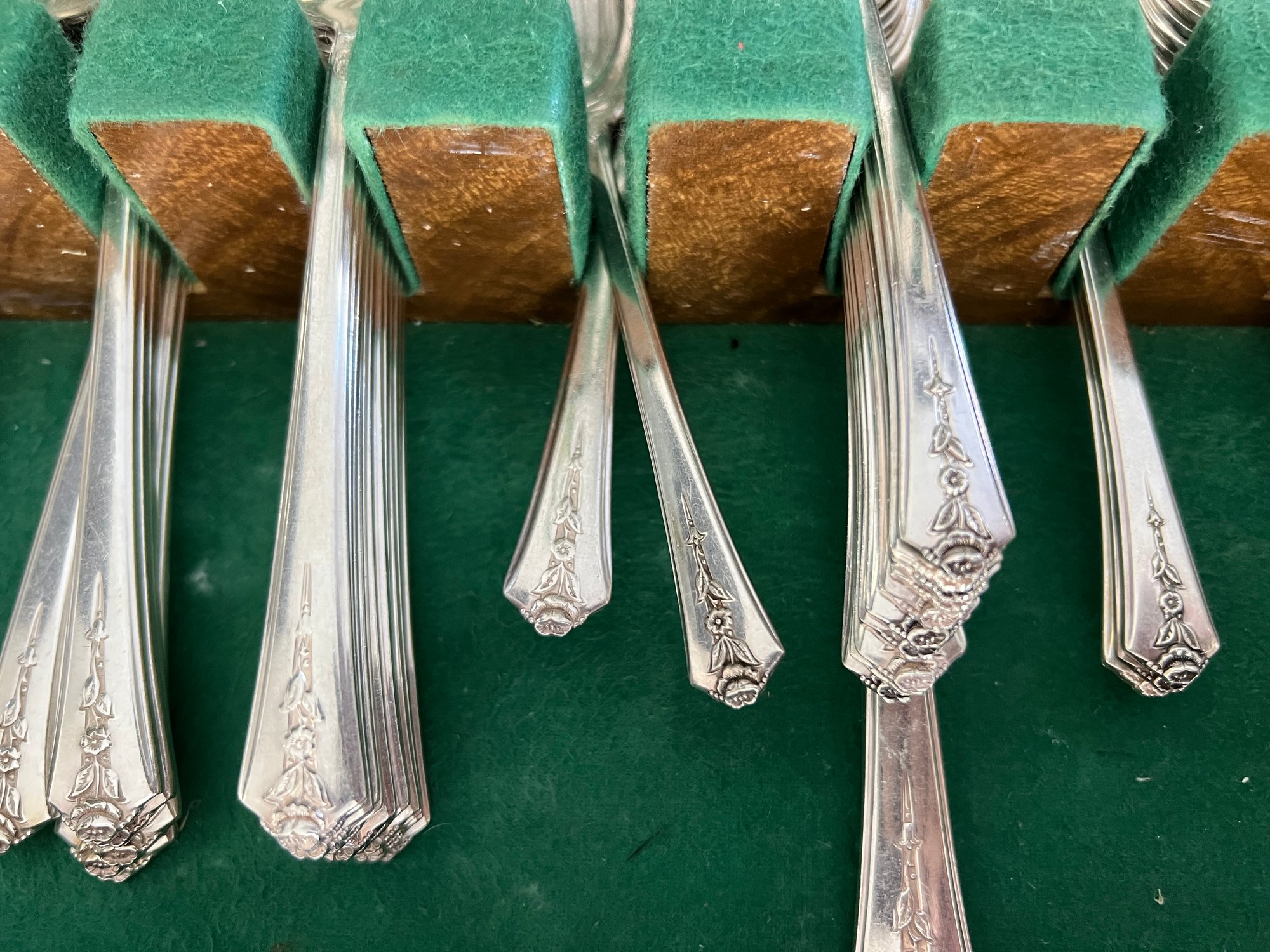 Wonderful old vintage Holmes & Edward Inlaid "Garden" pattern silver plate flatware service for twelve in its original case.