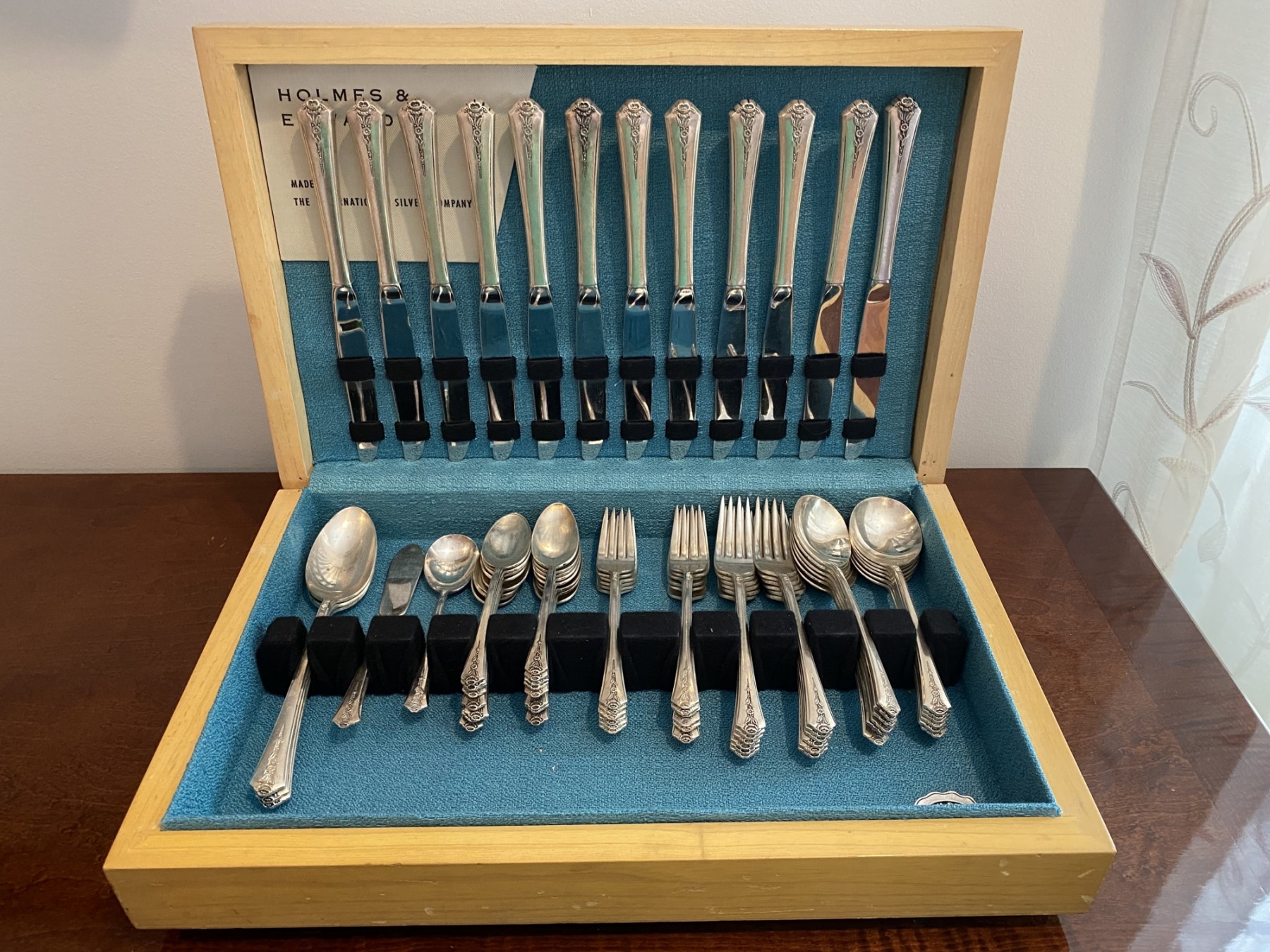 Beautiful set of everyday or special occasion flatware! Tarnish resistant chest has a beautiful oak leaf design. Nice overall condition, with expected surface wear consistent with use. See all photos for details.