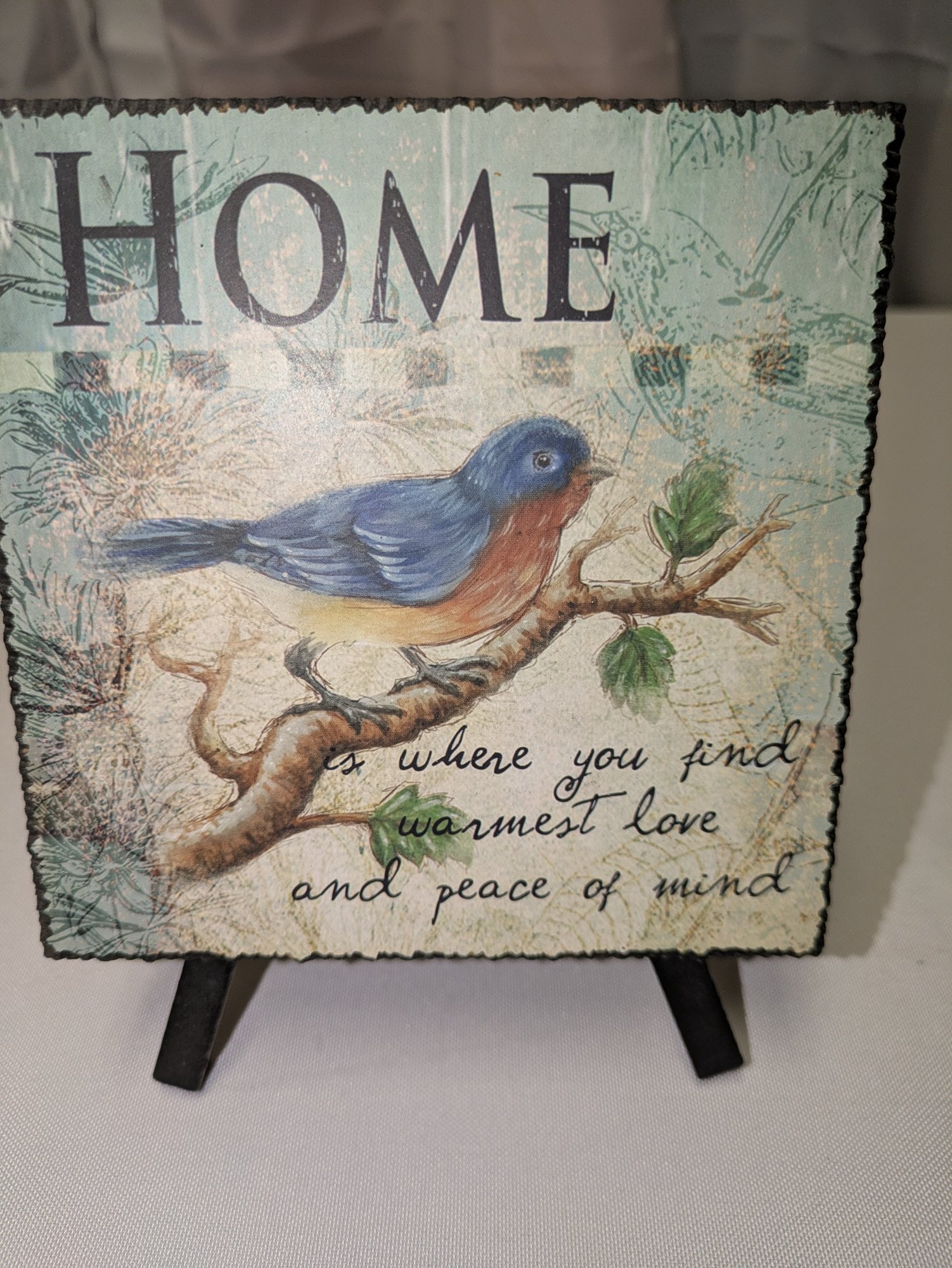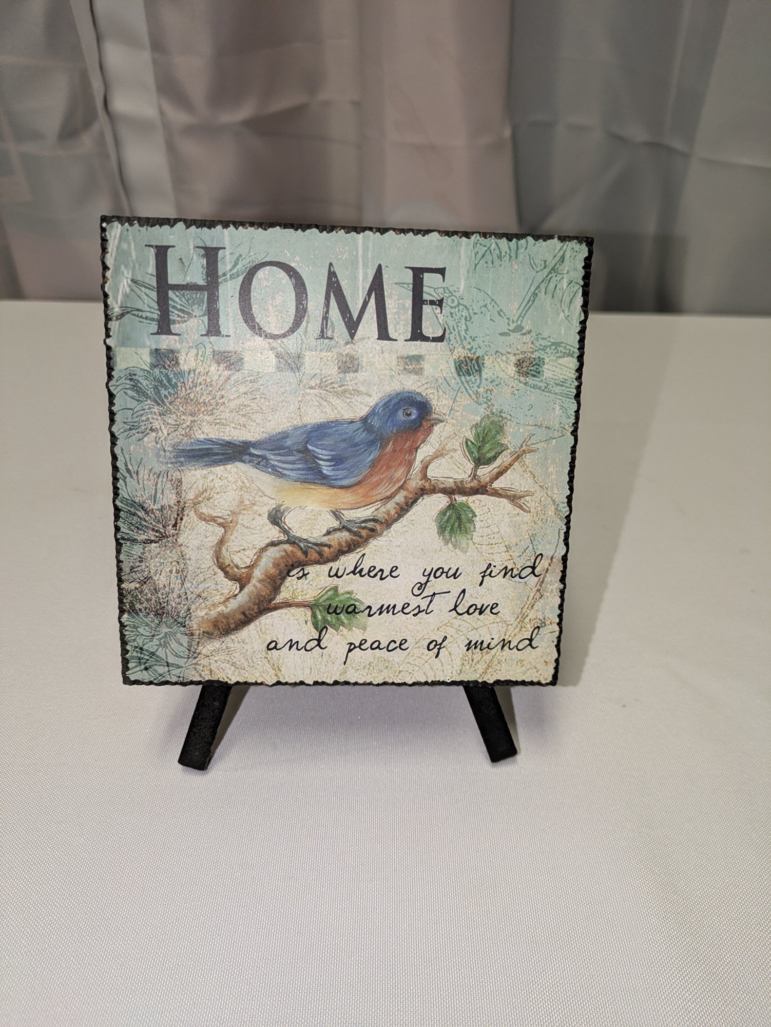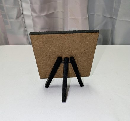 Adorable plaque mounted on a tripod stand. Excellent Condition. Please see all photos as part of the description and condition. 6.5" H x 5"Square