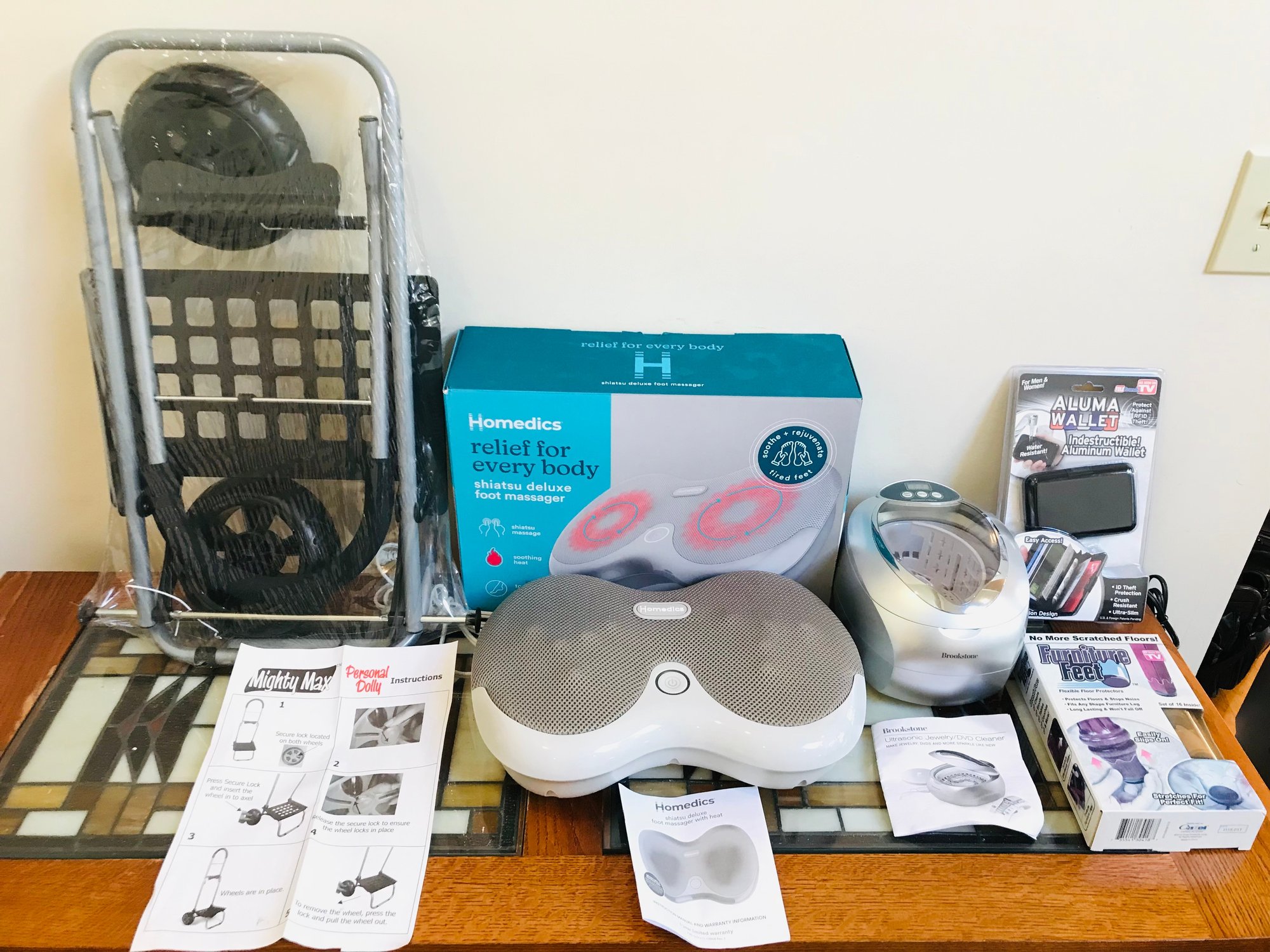 This diverse variety lot features several home convenience and personal care items, perfect for everyday use. Most items appear to be in original packaging or include original instructional manuals.
