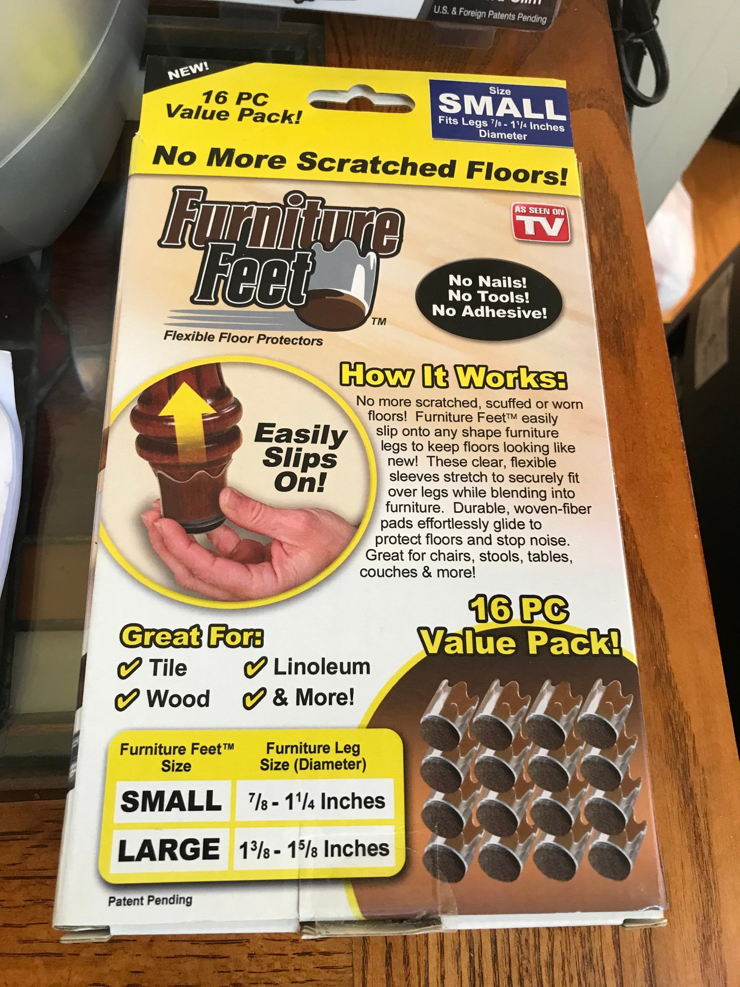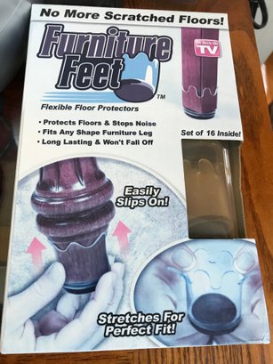 Furniture Feet: A set of 16 flexible floor protectors designed to slip onto furniture legs to prevent scratches and noise.