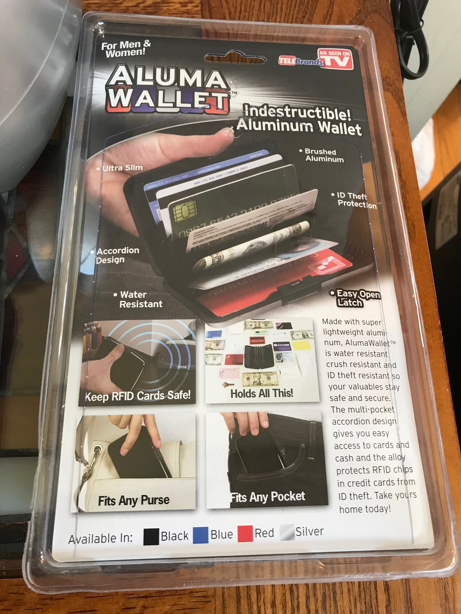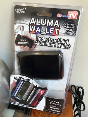 Aluma Wallet: New-in-package "As Seen on TV" aluminum wallet featuring RFID theft protection and a water-resistant, crush-resistant design.