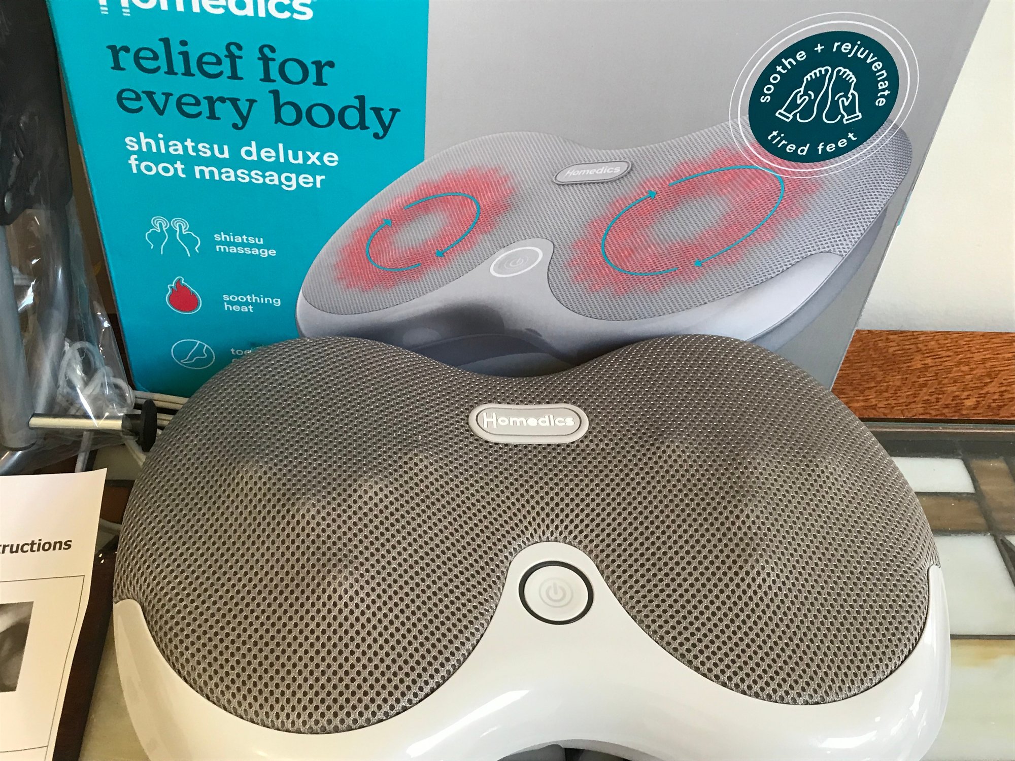 HoMedics Shiatsu Deluxe Foot Massager: Features deep-kneading shiatsu nodes and soothing heat for foot relief. Includes original box and manual.