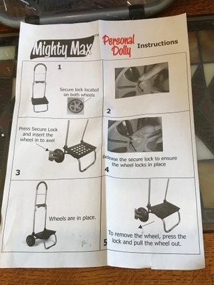 Mighty Max Personal Dolly: A lightweight, foldable utility cart/hand truck with easy-to-install wheels. Includes original instruction sheet.