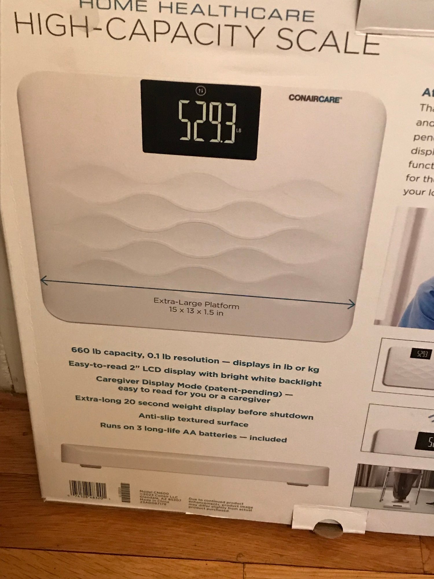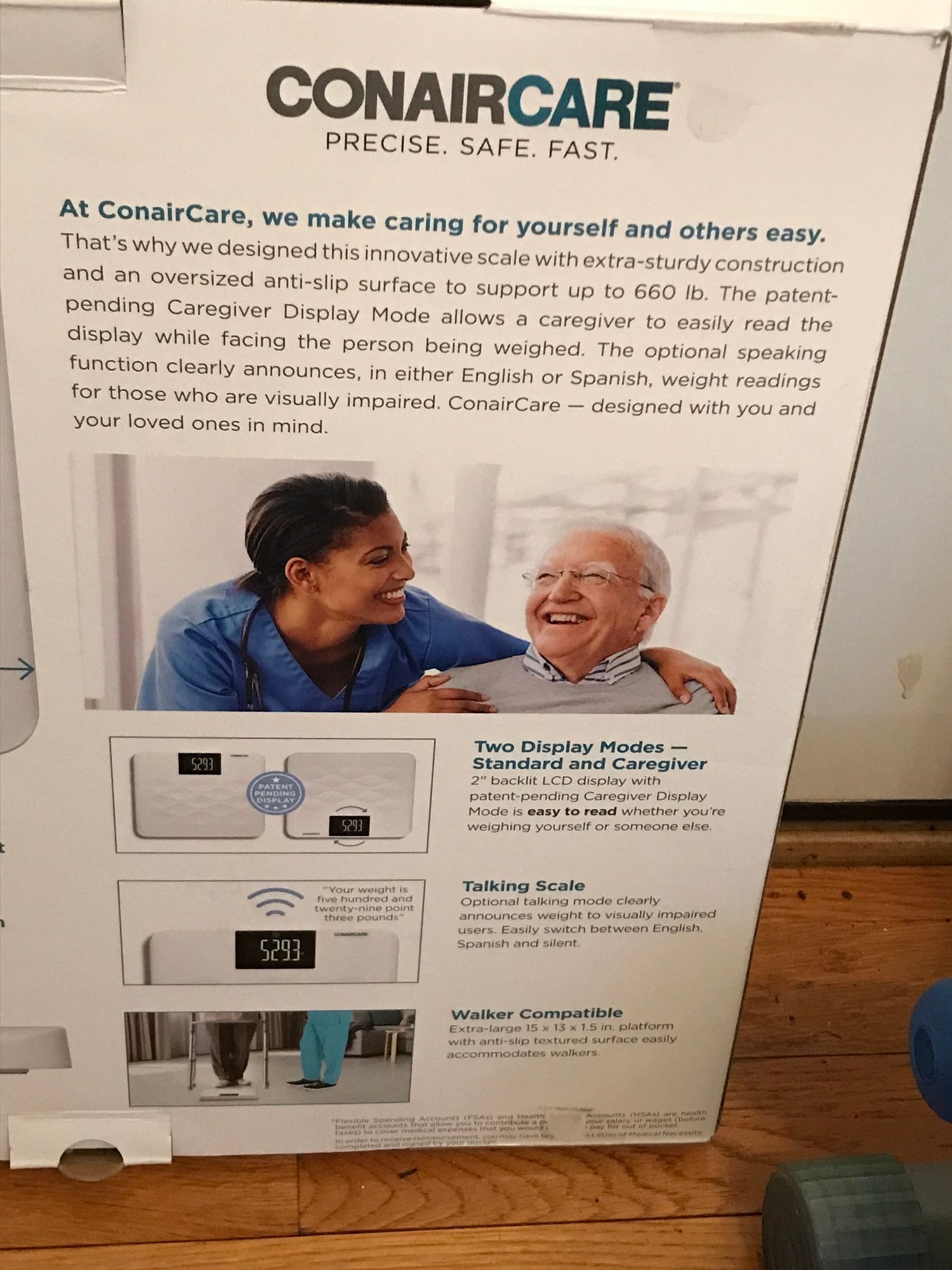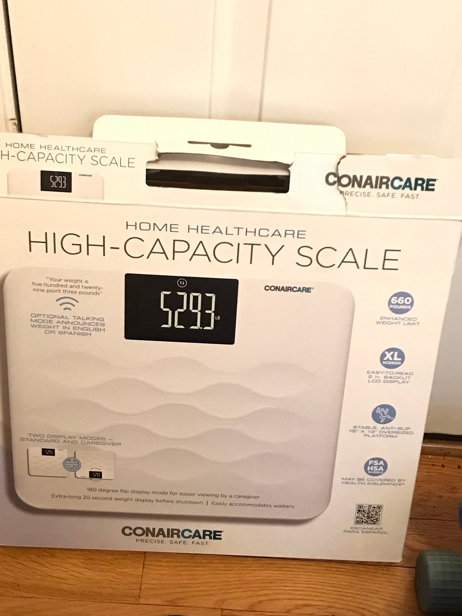 ConairCare High-Capacity Home Healthcare Scale: An extra-wide digital scale with a 660 lb capacity. Features an XL backlit display and an optional talking mode (English/Spanish). Tested and works.