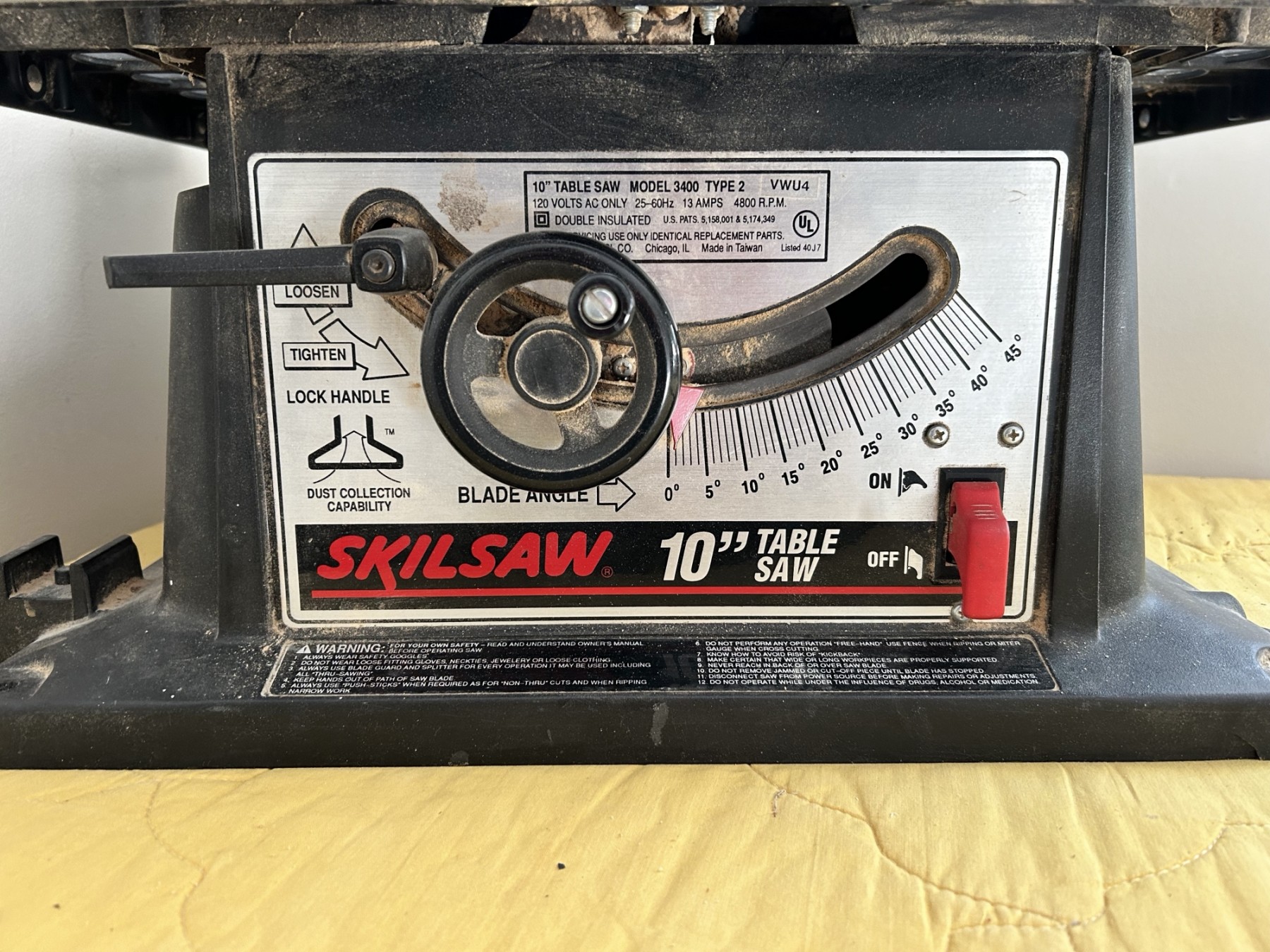 Working 10” blade homeowner used table saw. Portable space saver. Use it & put away !!