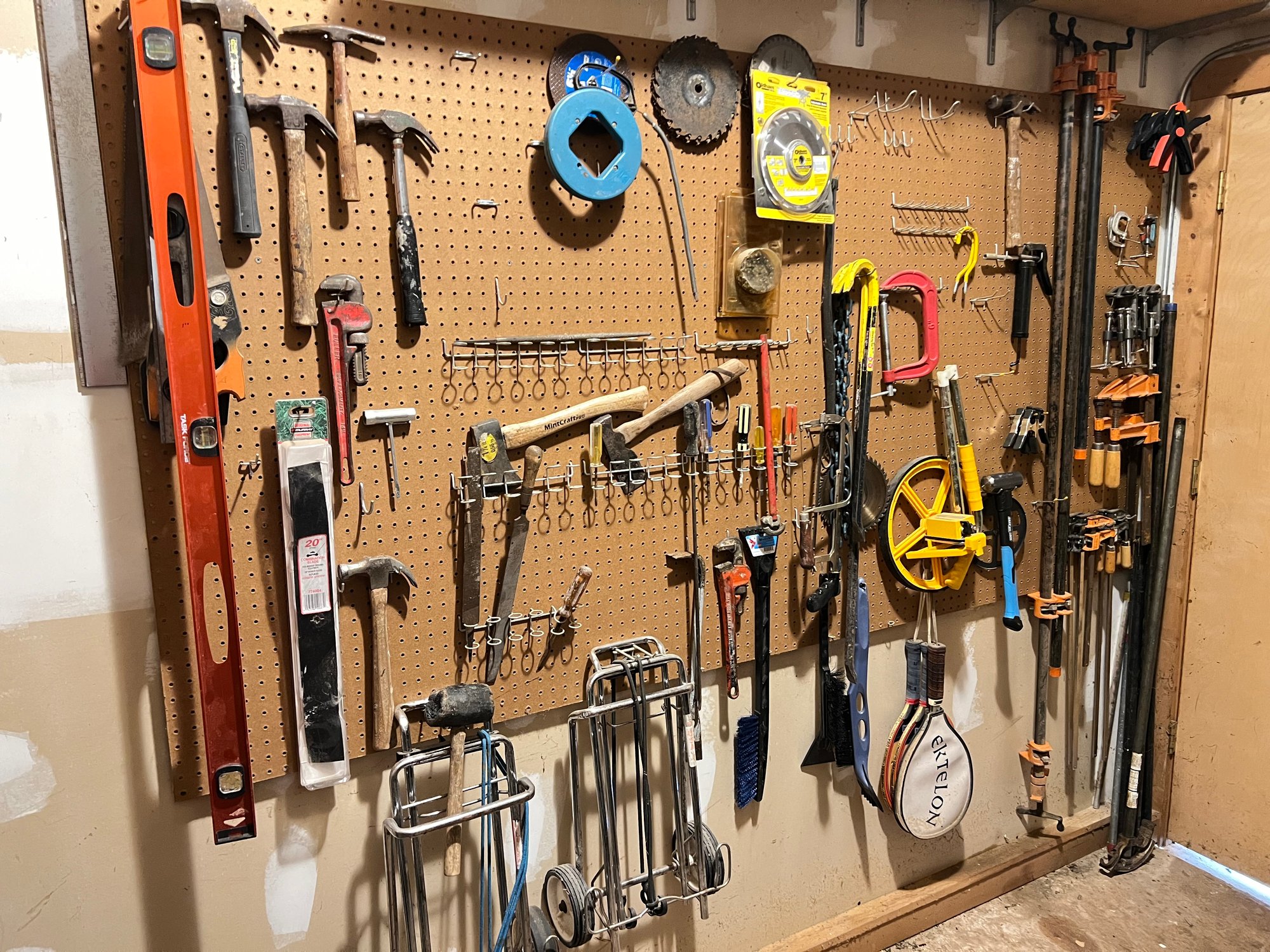 Everything on the pegboard is for sale, tons of good clamps, hammers, and more.