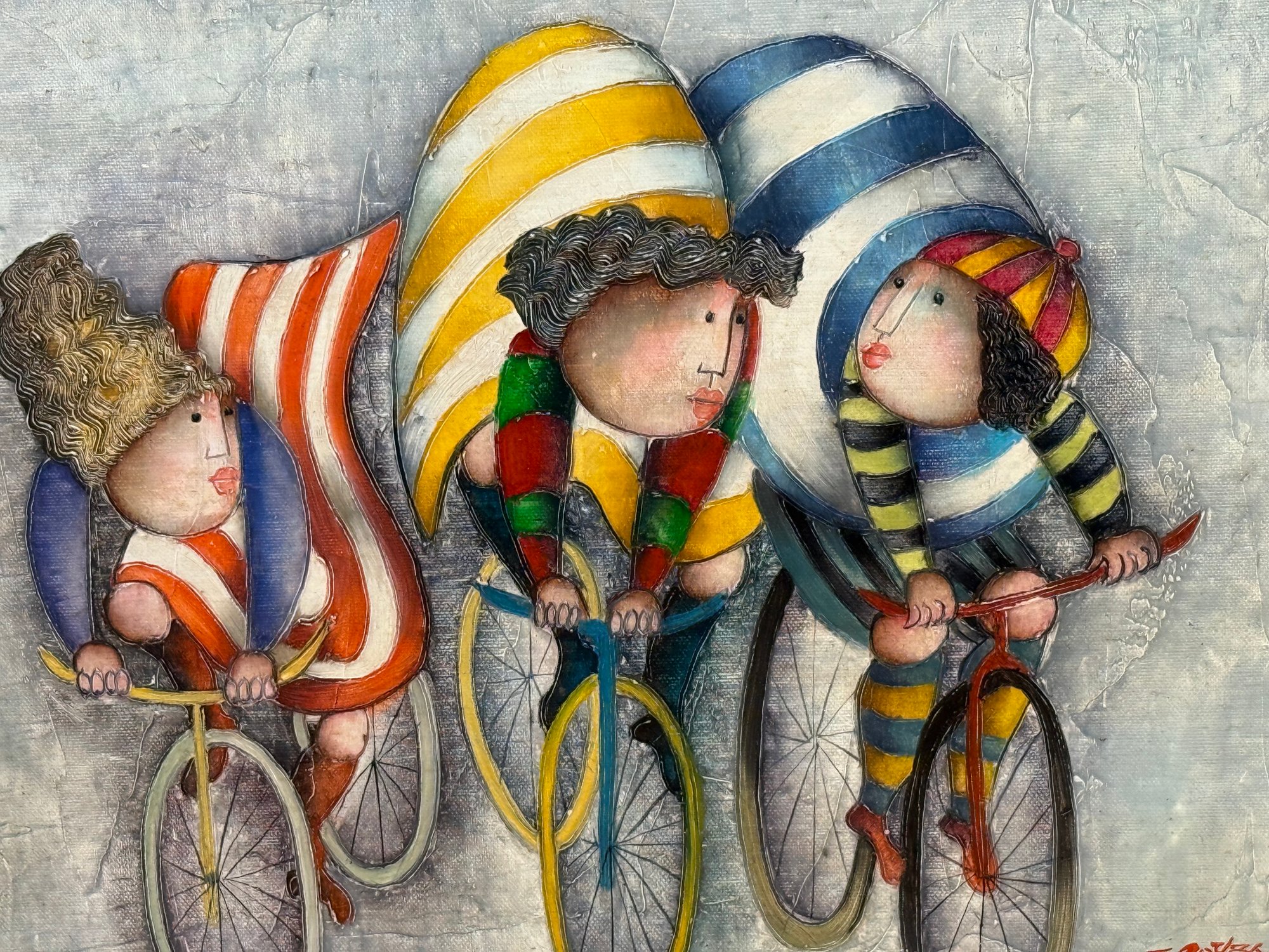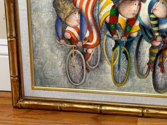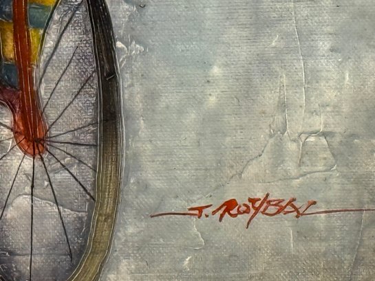 J Roybal Cyclists Signed Original Oil Painting