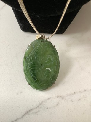Jade Fish Pendant On Sterling Silver Chain #8