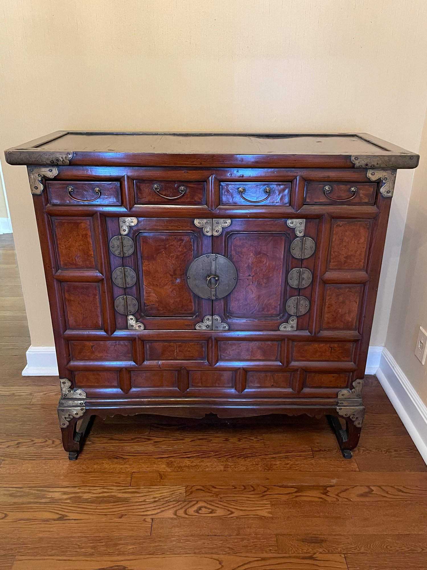 Japanese Burled Elm And Painted Tansu Chest