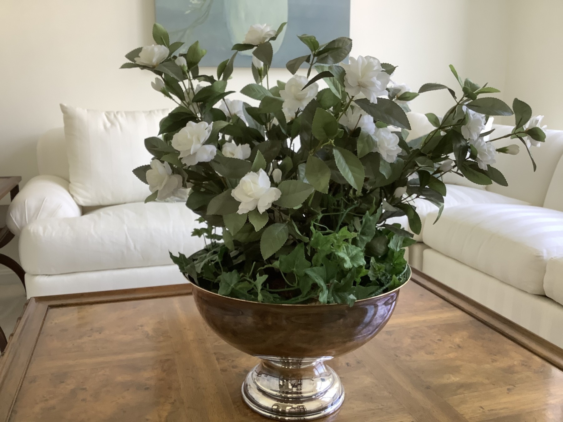 Jasmine Look Alike! Beautiful Arrangement In Silver Bowl