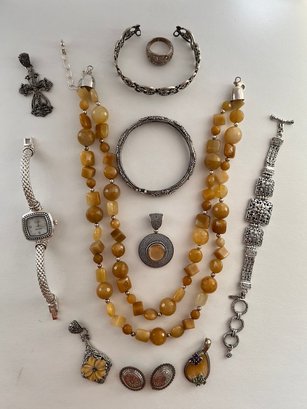 Jay King Yellow Opal Beads, With Sterling Silver, Pendants, Bracelets, Rings, Super Lot