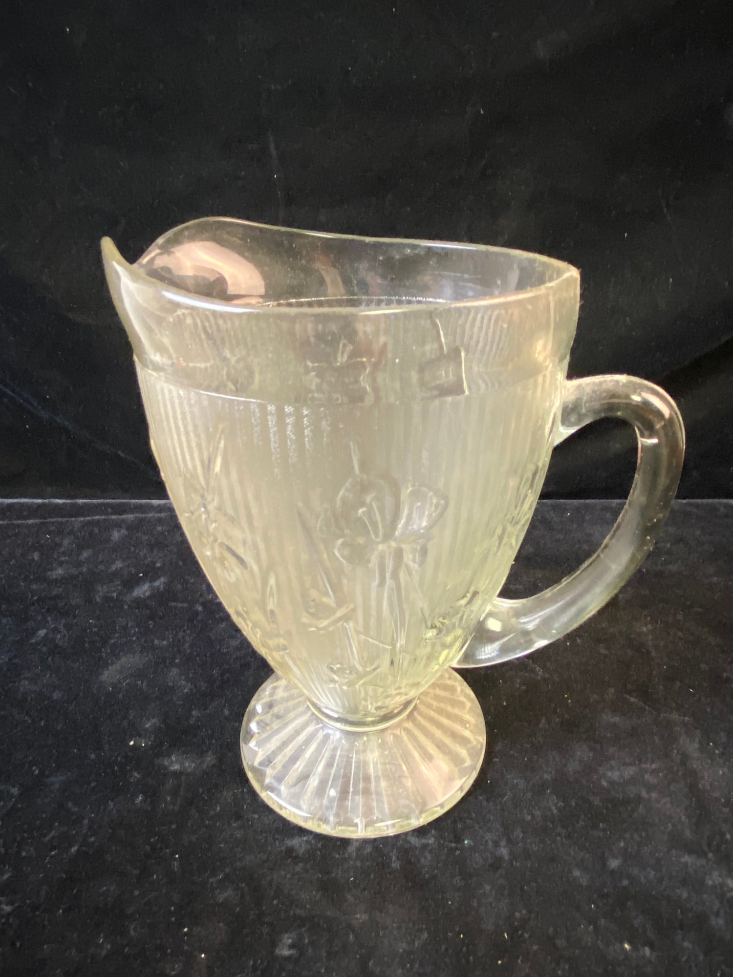 Jeanette Glass Iris And Herringbone Clear Water Iced Tea Pitcher