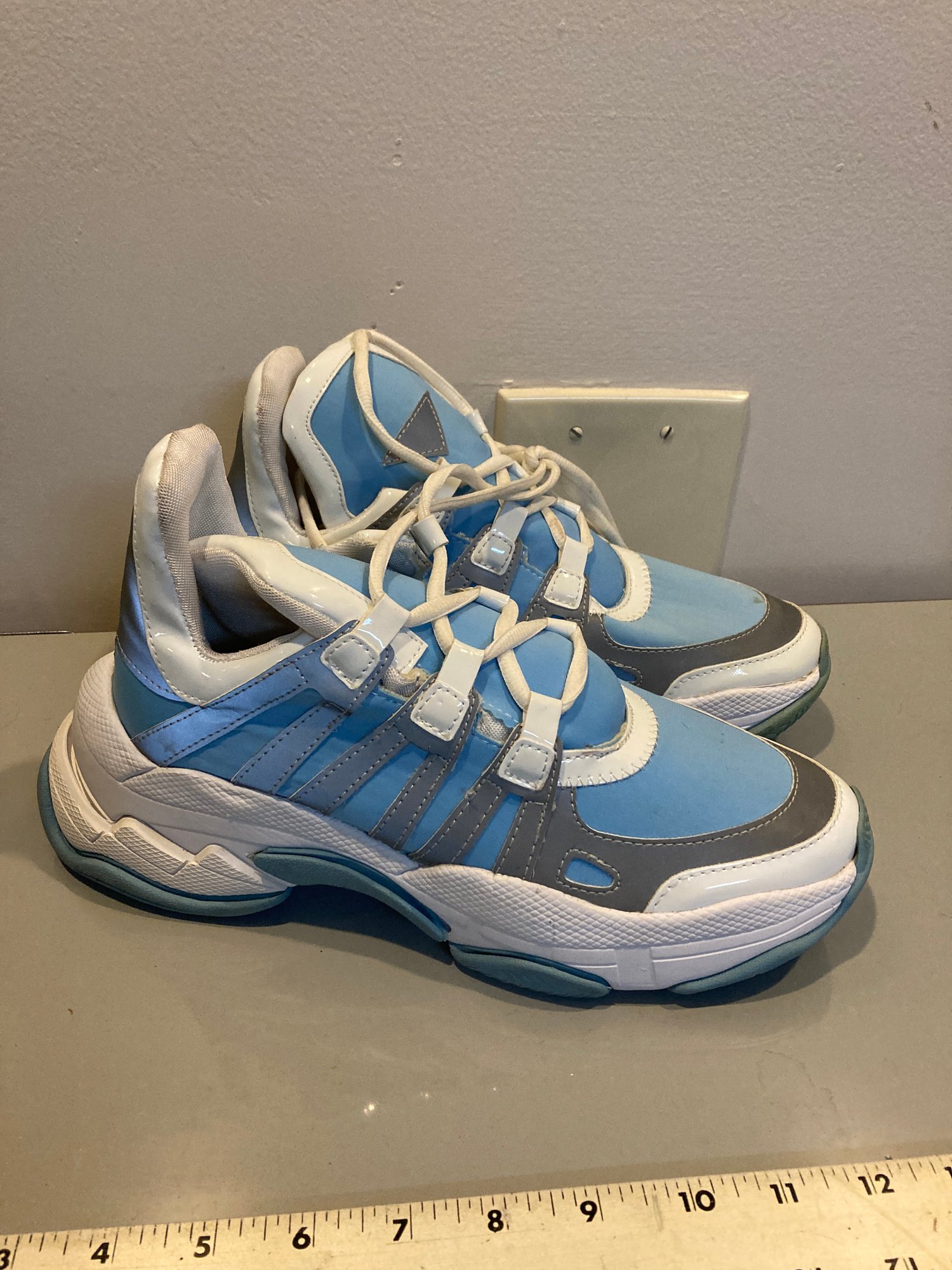 please view photos shoes may show some slight defect , scuffs or incidental dirt from being transported unboxed,