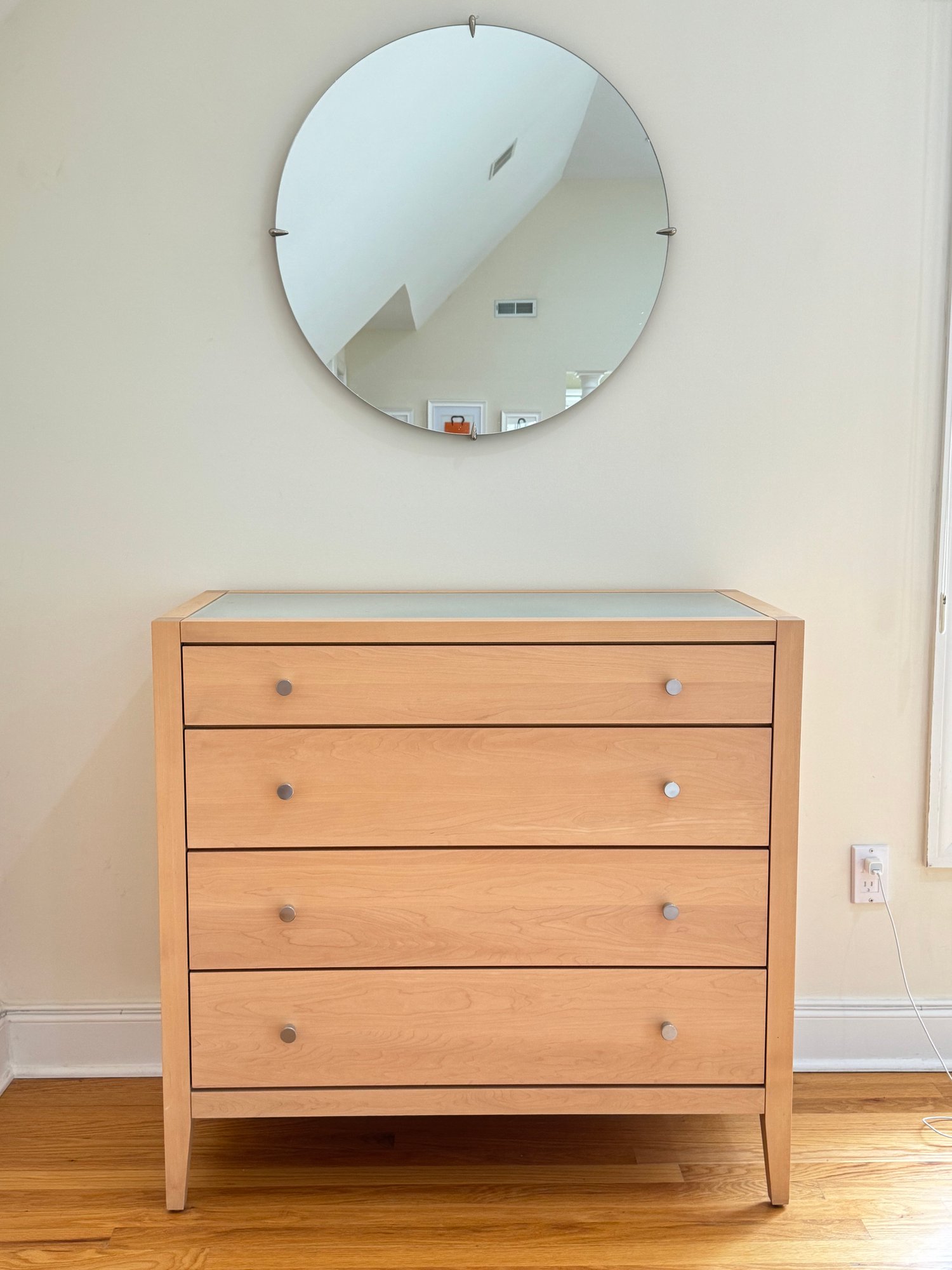 Modern minimal good looking design. Note: This chest matches another chest , nightstands, headboard and armiore in this auction . LOTS 18, 19, 20, 21