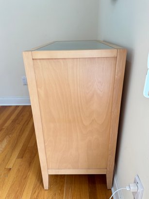 Lovely contemporary blond wood chest by Jensen & Lewis NYC. Quality made furniture. Condition is good and well maintained. Size 38.5 W x 18.5 D x 37 H