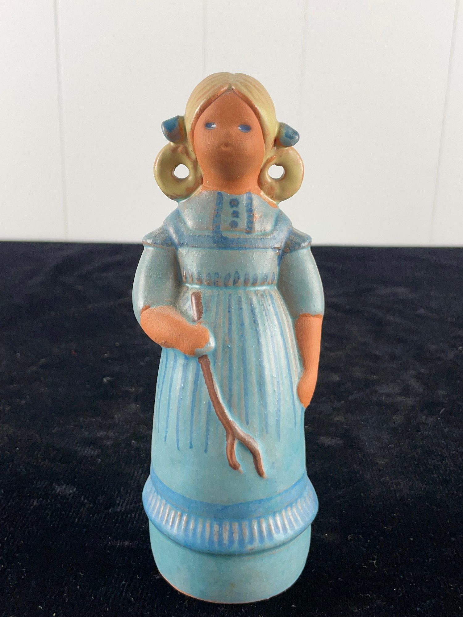 Girl in blue dress figurine. Brand on sticker and engraved in bottom. No damages seen in images. See photos for more conditions and sizing.