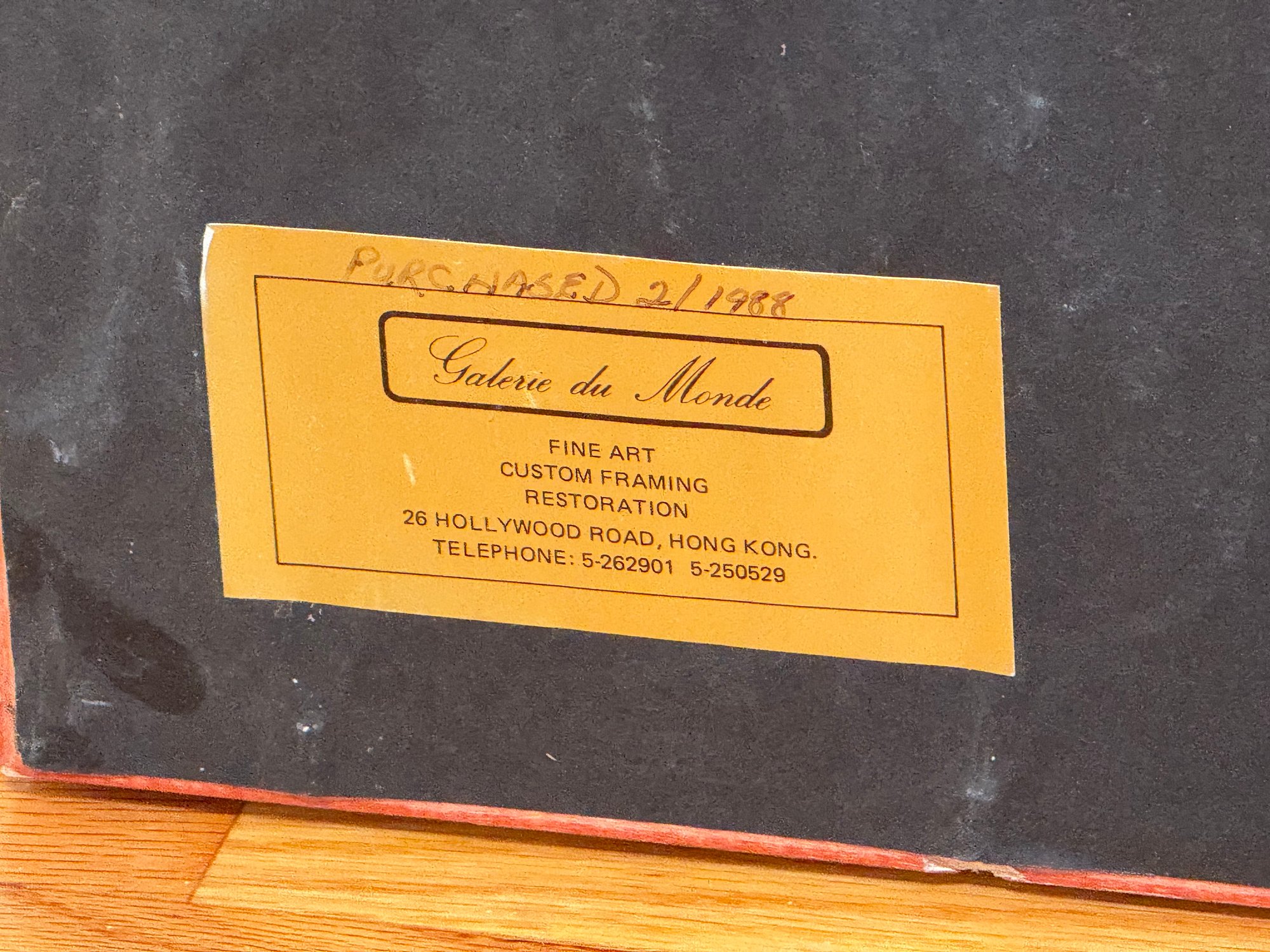 This was purchased at an art gallery in Hong Kong in 1988. See photograph of the receipt. Appears to be in Hong Kong currency (HK).