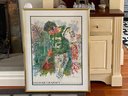 Large framed poster by Expressionist Leroy Neiman of New York Jets football quarterback Joe Namath walking off the field in sheer exhaustion after their 1969 Superbowl victory against the Baltimore Colts. Published by Hammer Graphics NY. Joe Namath autographed. Housed in a gold tone frame.
