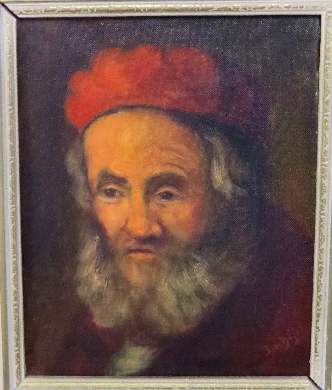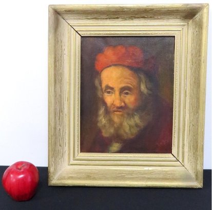 One of four older male portrait paintings from the same estate, acquired in Europe in the early 1950's. This one depicting an elderly man with curly beard wearing a red cap. Primarily a landscape/nautical artist (and later in life floral still life's). Three of the four portrait paintings offered in this sale are believed to be his work. Greenish gold gilt frame measures 14.5" x 17" with 11 x 9" visible work.