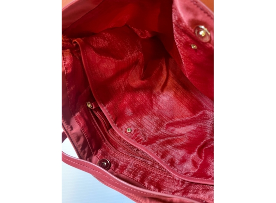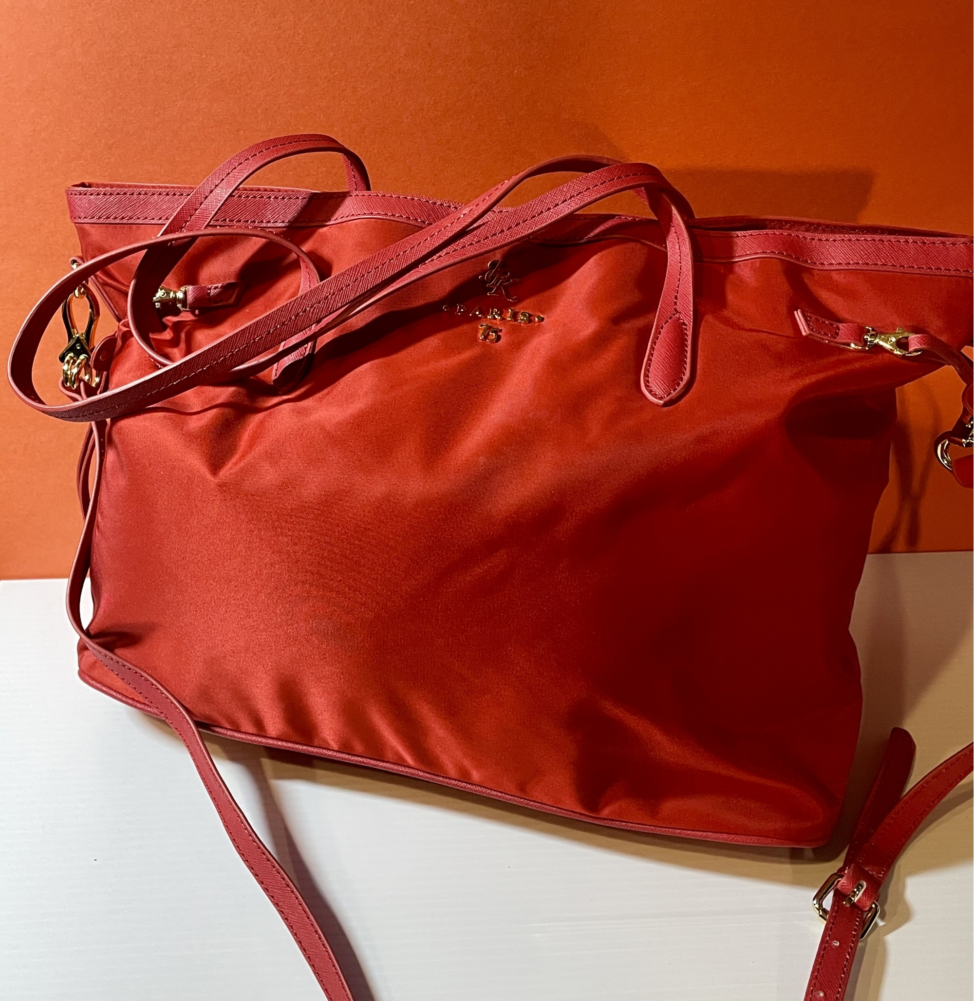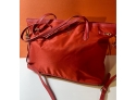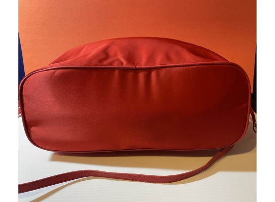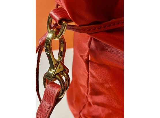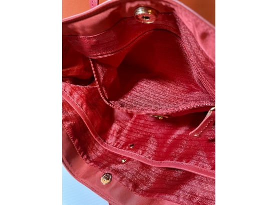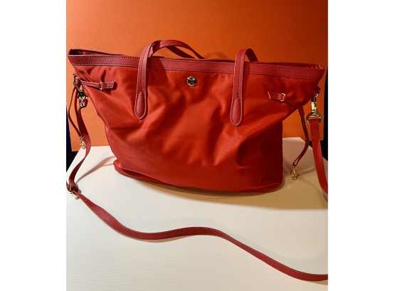 Nylon Tote with great detail and Signature pattern fabric lining. Includes over the body strap.