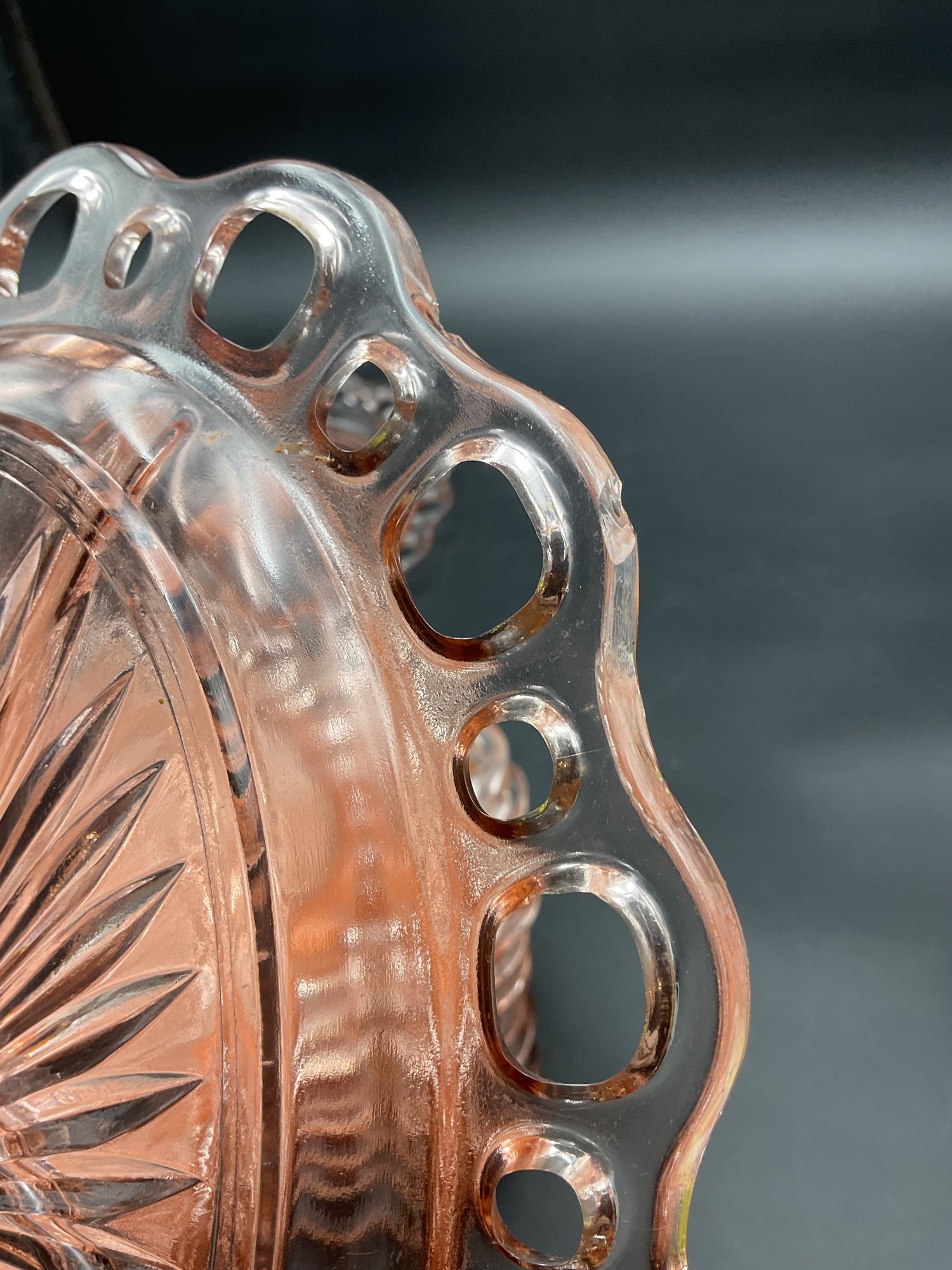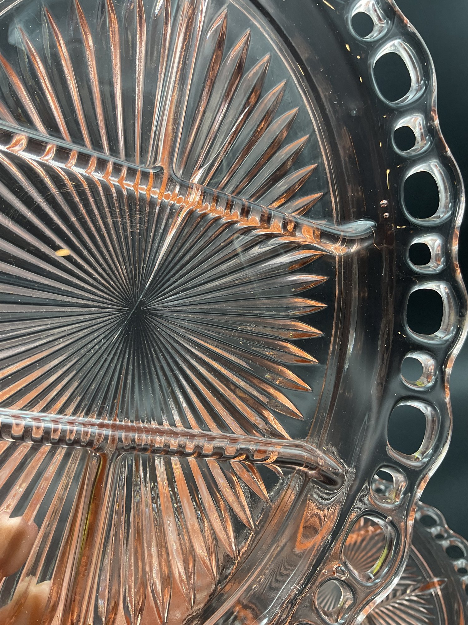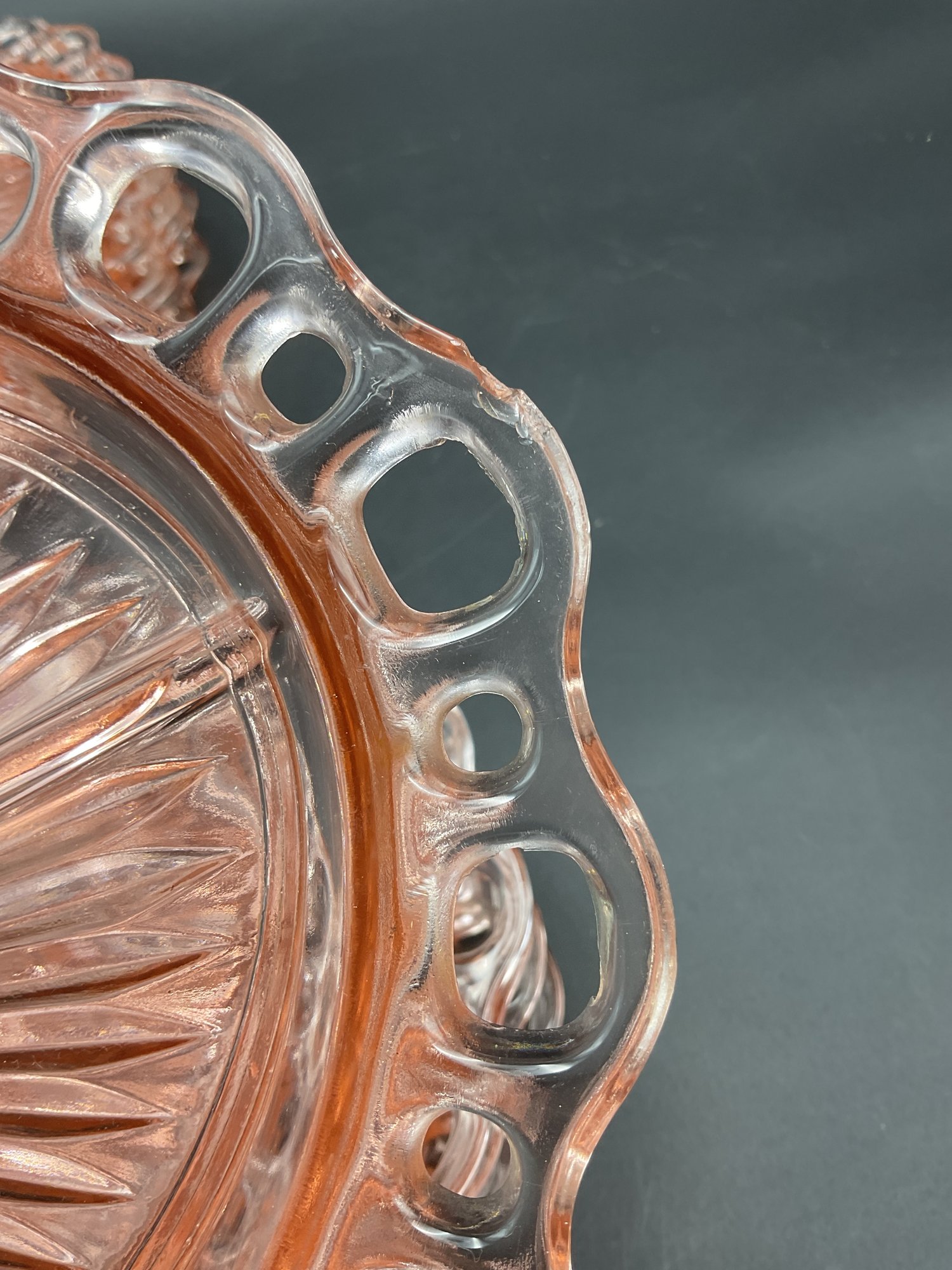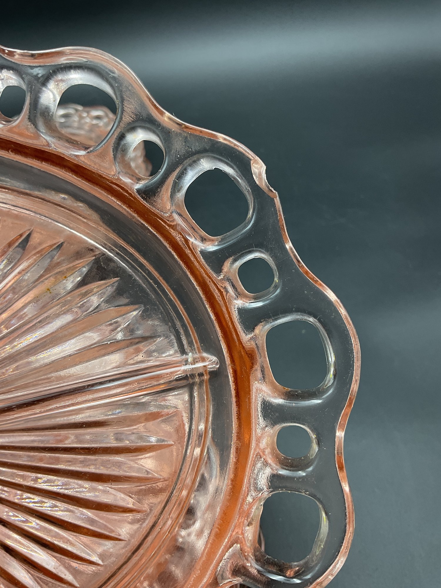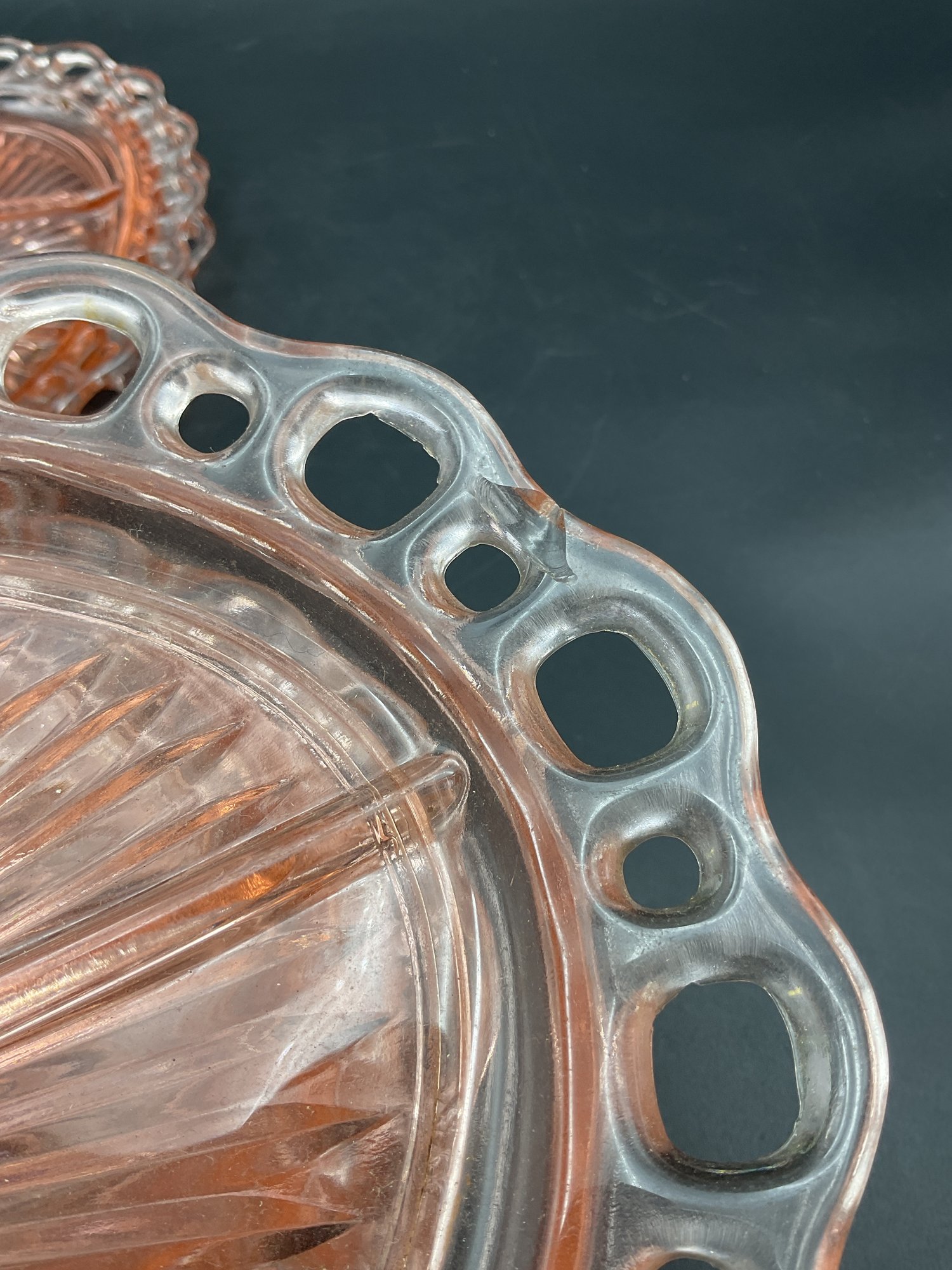 Ten Anchor Hocking Old Colony (aka Open Lace or Lace Edge) pink depression glass large divided serving dishes. Vintage from the 1930's, this is an amazing collection! A couple are in excellent condition, the others have minor flaws (chips at the edges, one with crack at the center) - see photos for details. These sell online for $15-20 each!