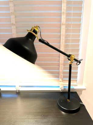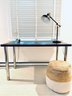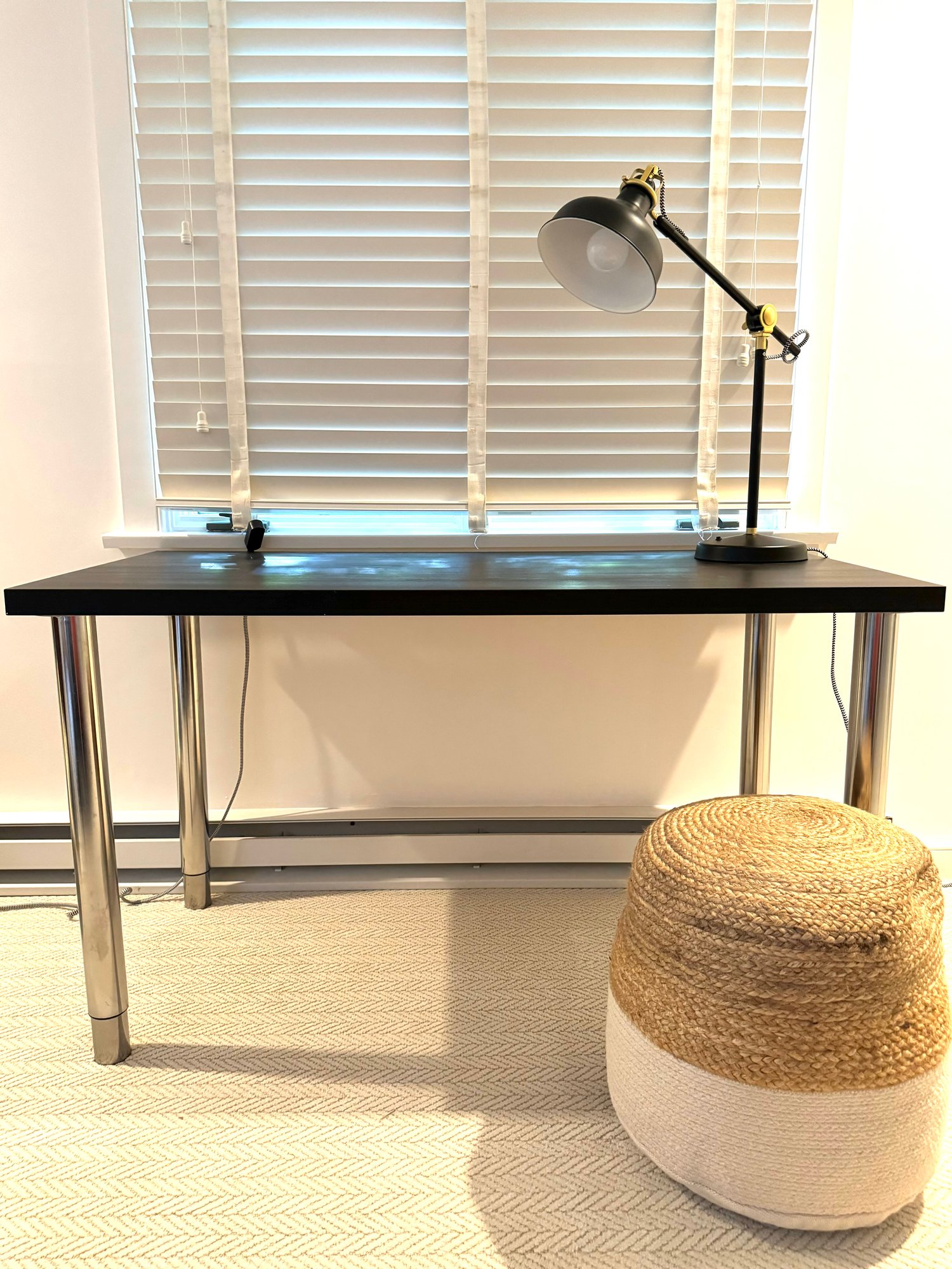 Adjustable HT Ikea Desk, PB Lamp and pouf
