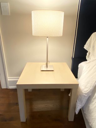 with brushed silver lamp