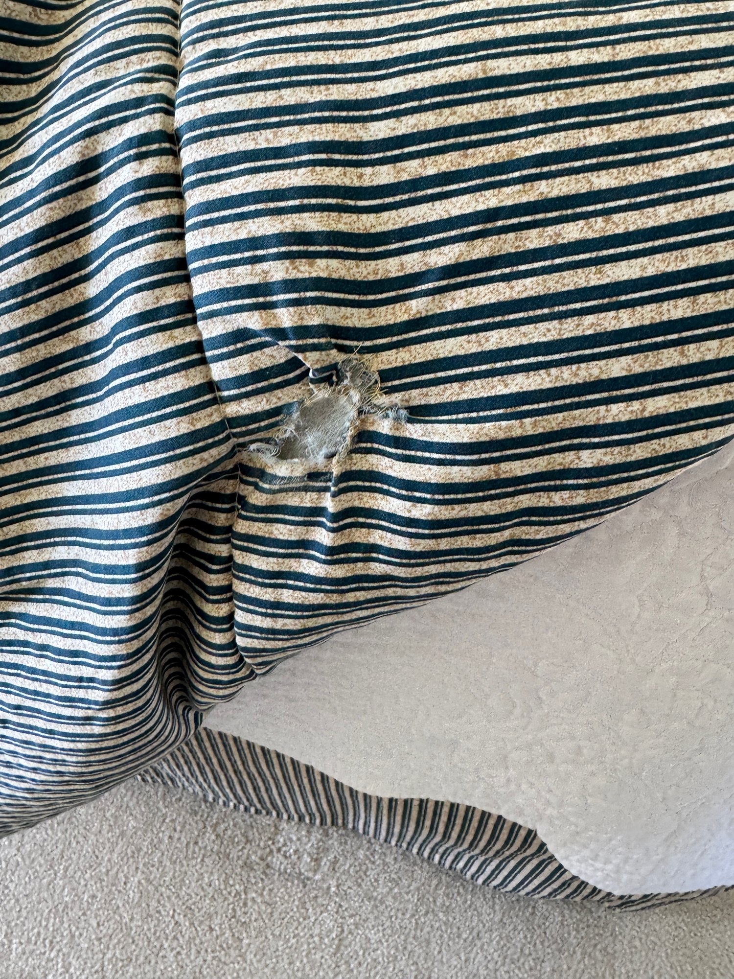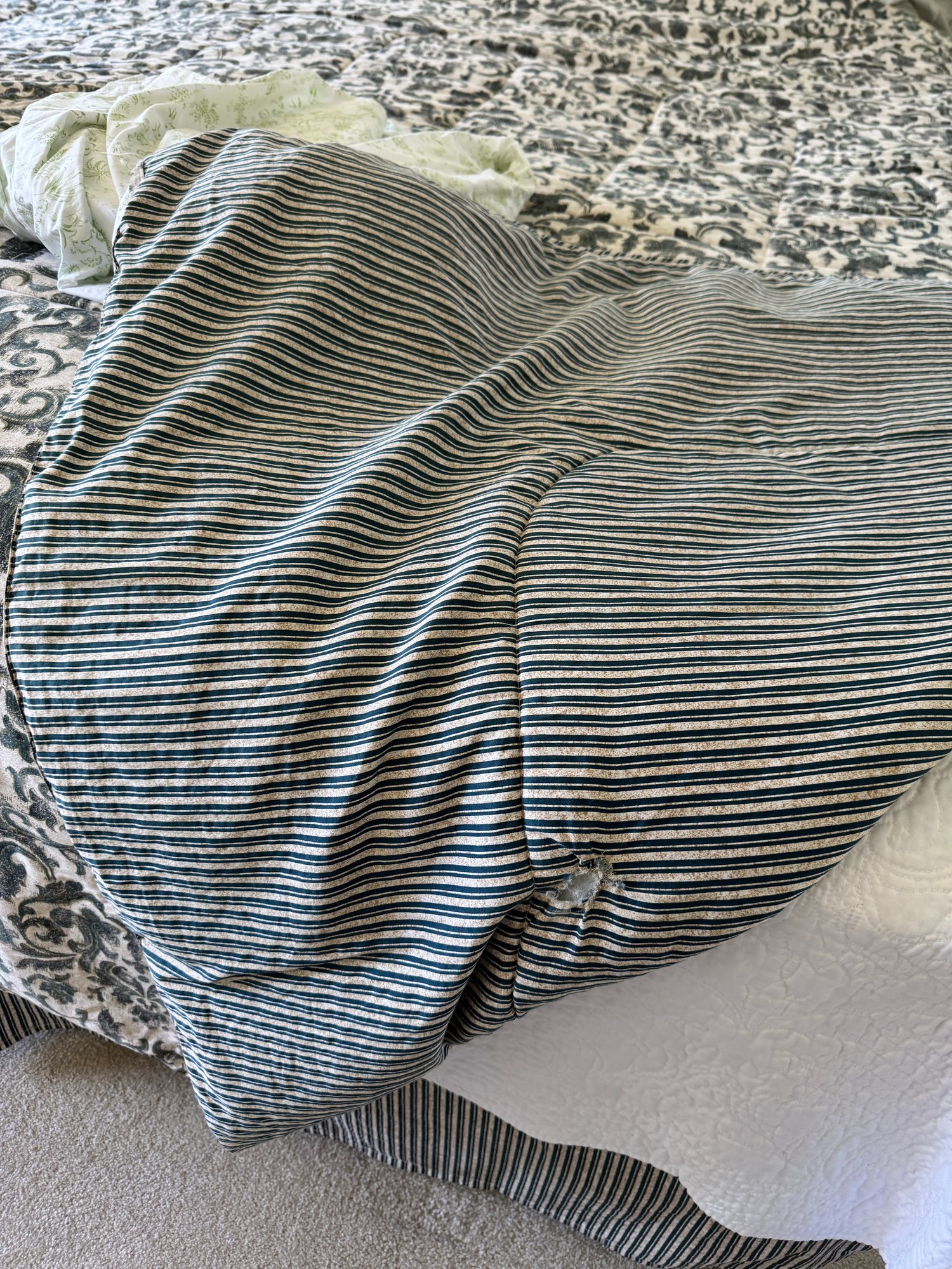 Notes: used condition, dark green comforter has holes