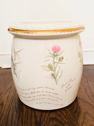 Inspired by 18th-century dinnerware ,created for Catherine the Great, Prairie Flowers showcases indigenous prairie flowers accompanied by prose from Aldo Leopold, one of the early leaders of the American wilderness preservation movement. This floor receptacle extends the delicate floral design throughout your bath or powder room, making an attractive wastebasket or storage container.