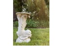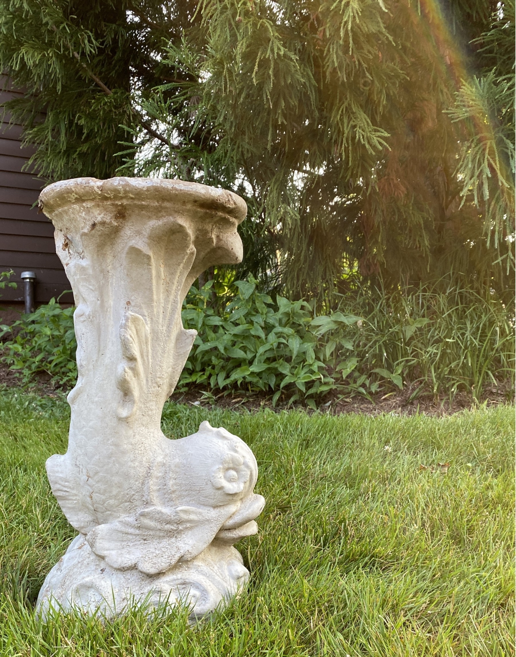 Beautiful bird bath base in need of its bowl....can also be retrofit to accept a gaze ball. Base is in good condition, heavy and well made.