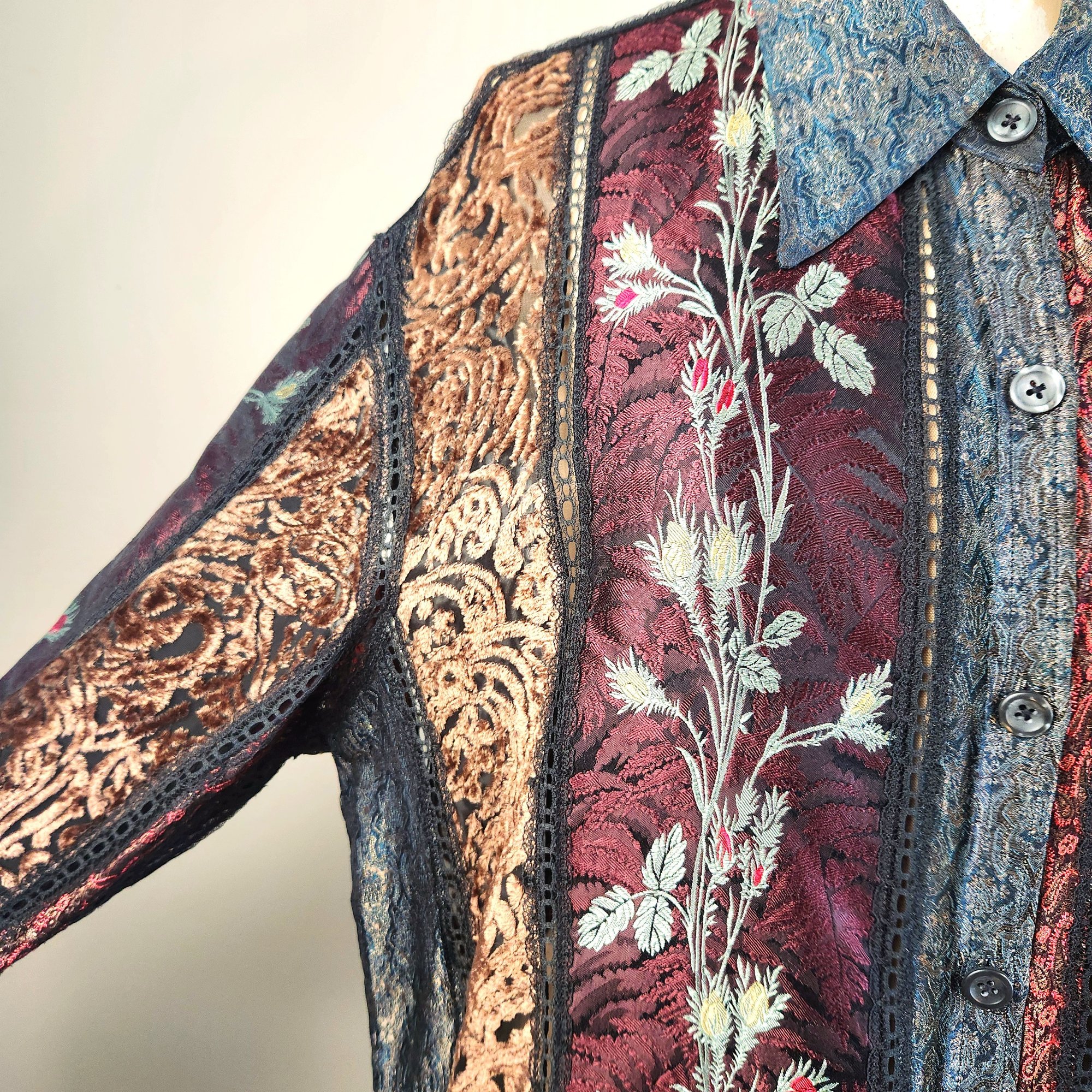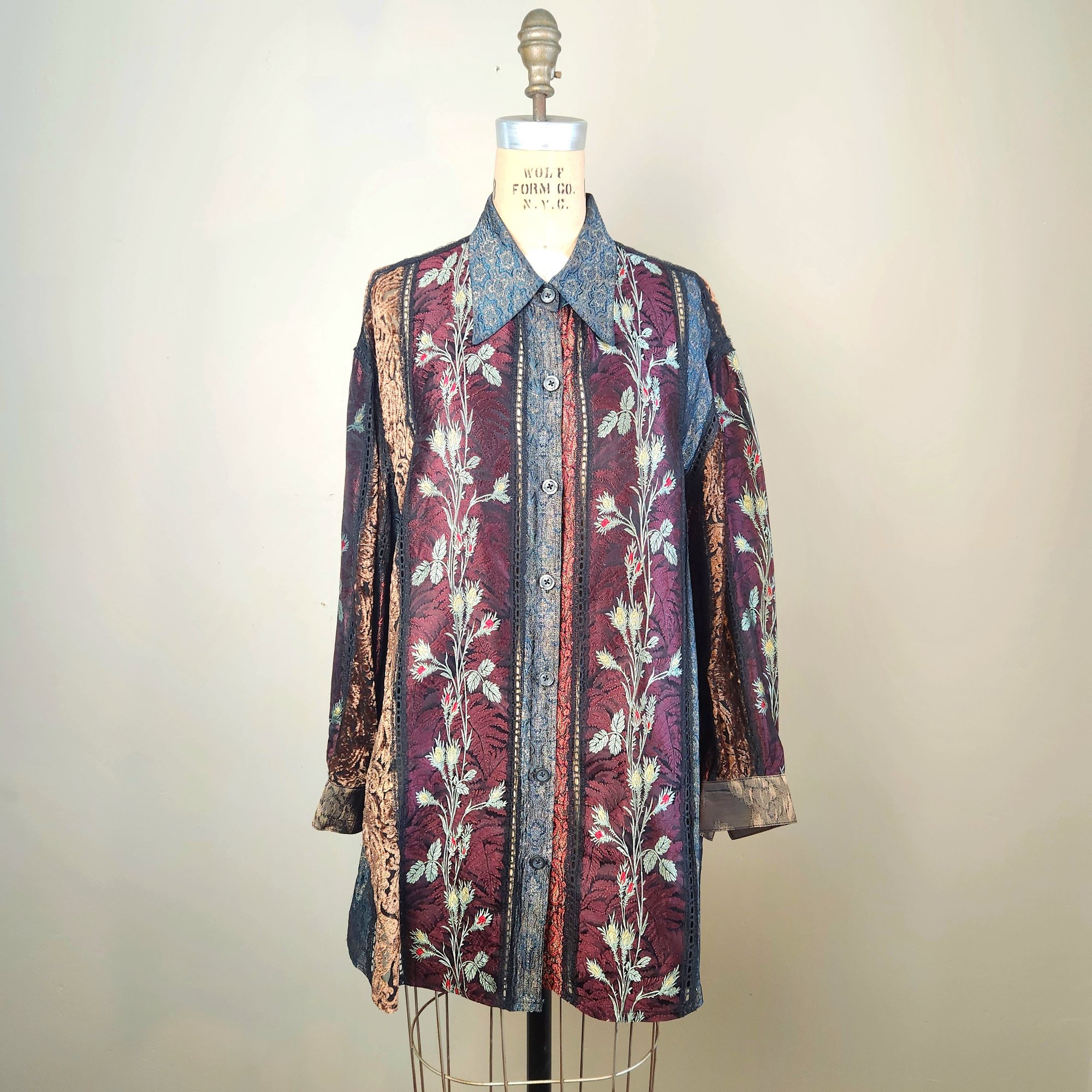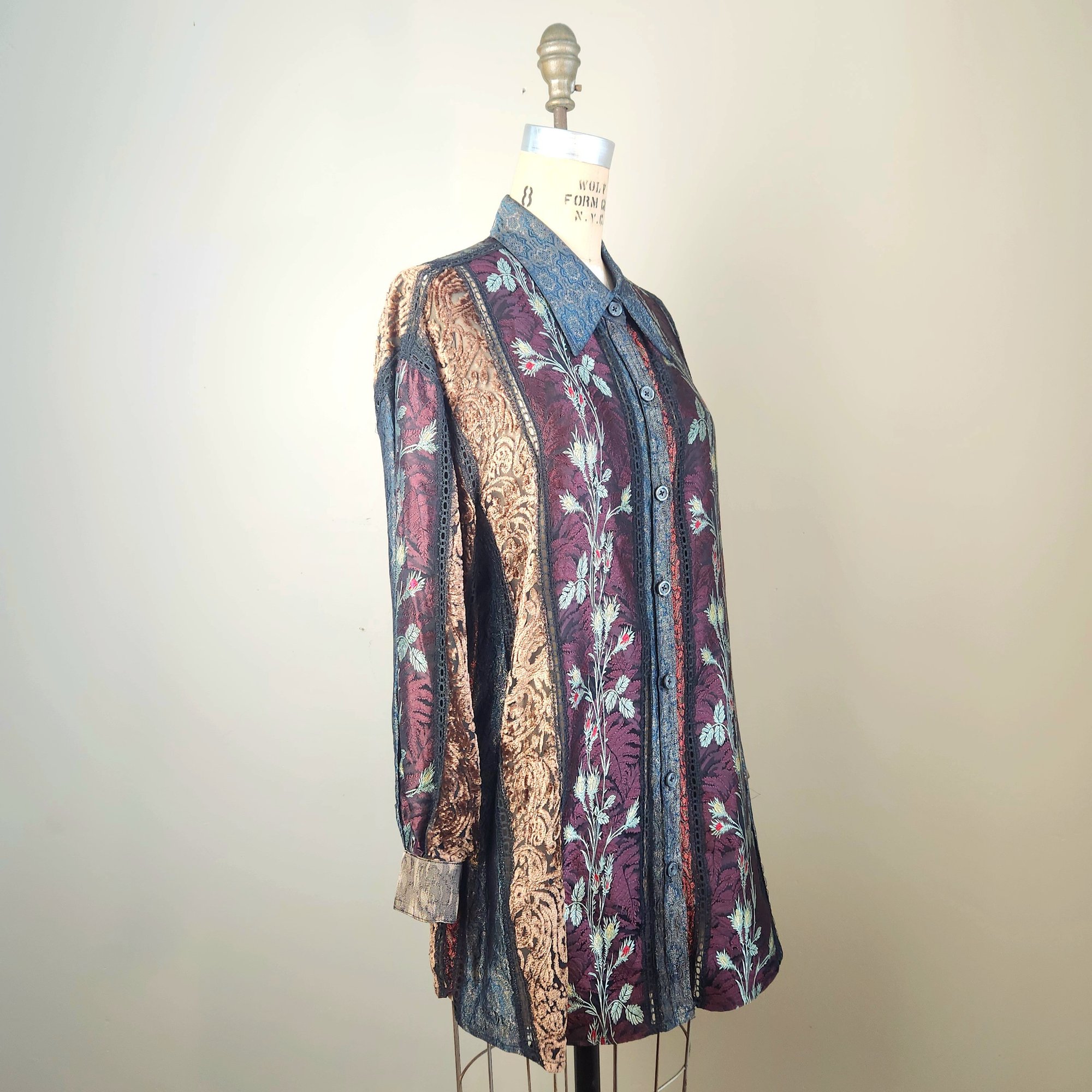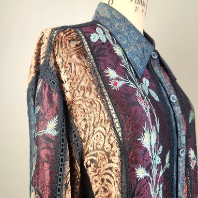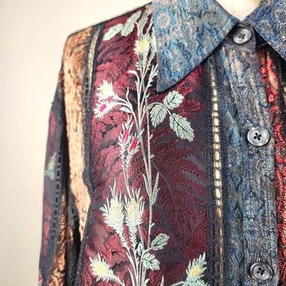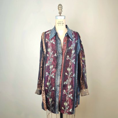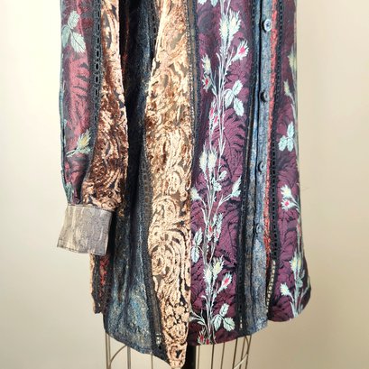 Gorgeous all silk sheer button up with long sleeves, by Koos Van Den Akker, NYC.