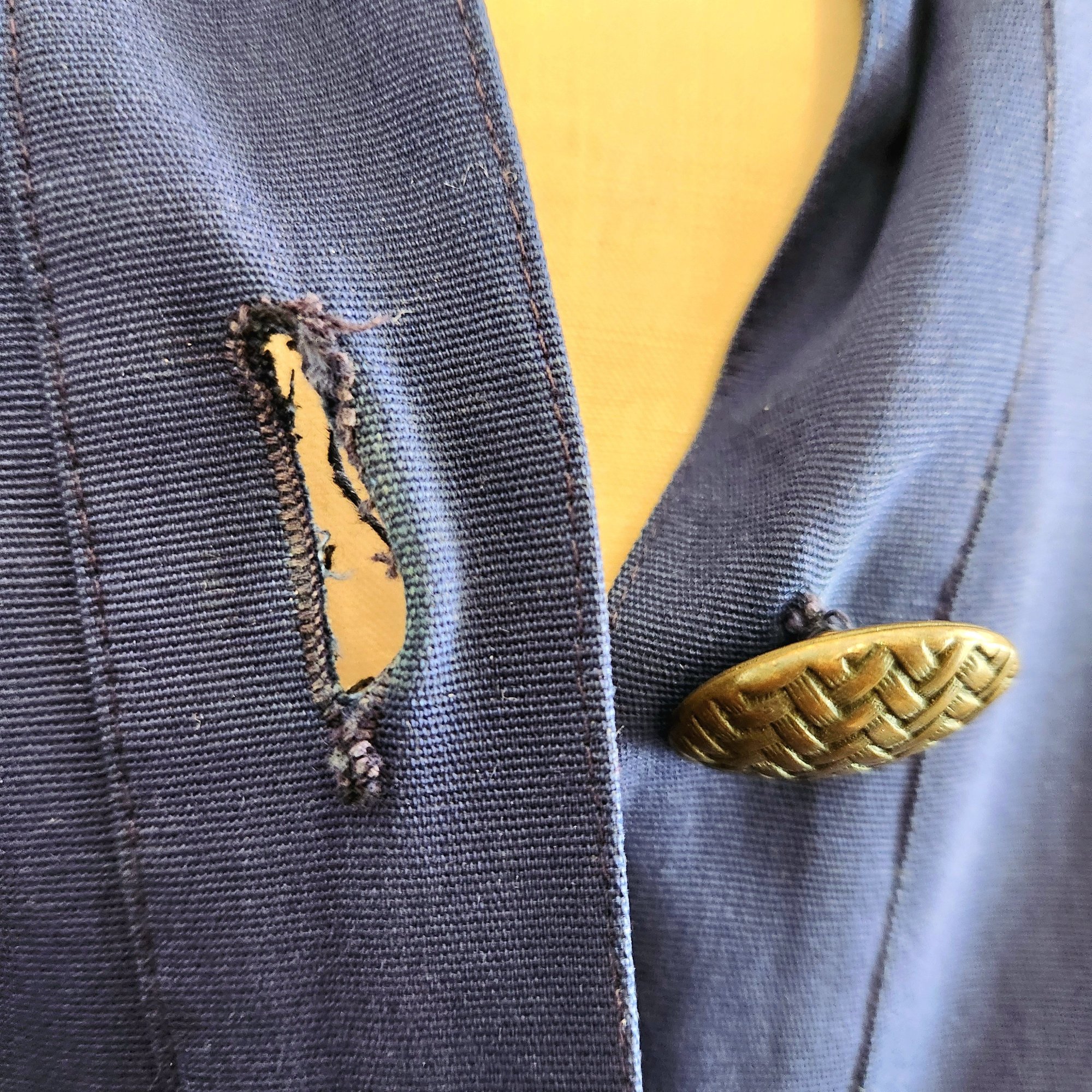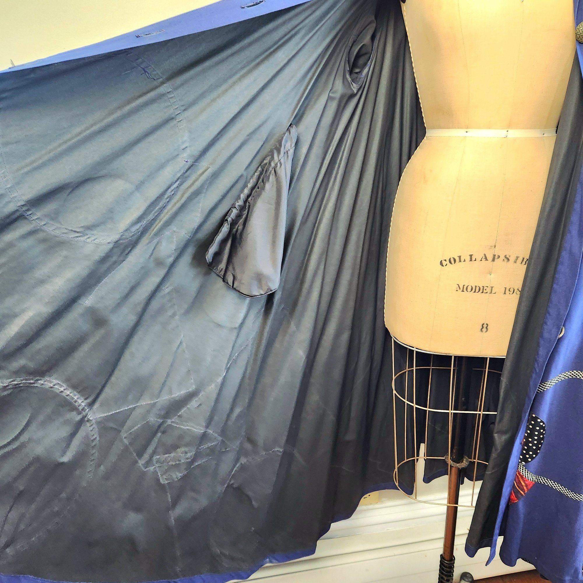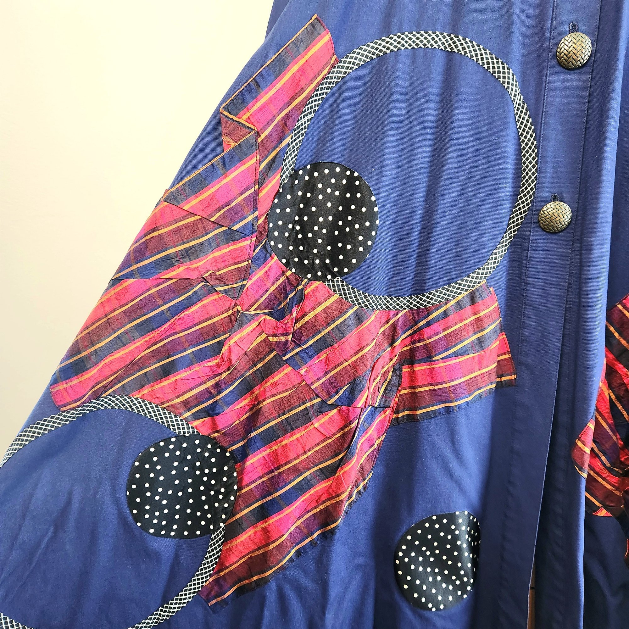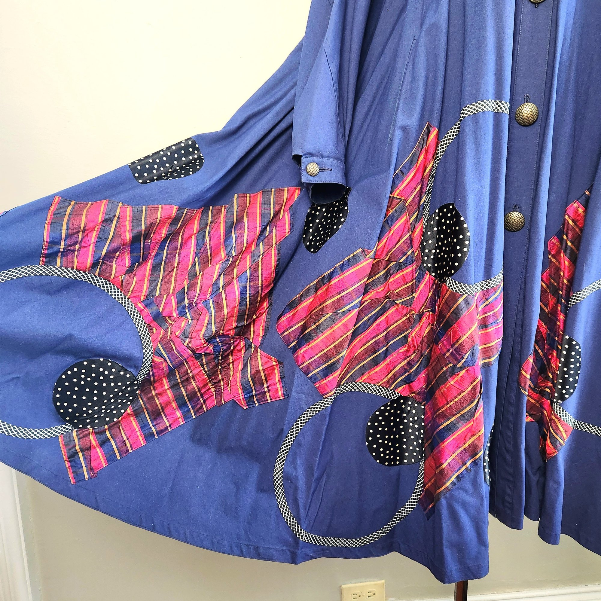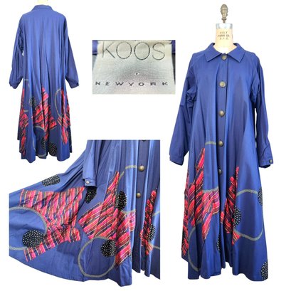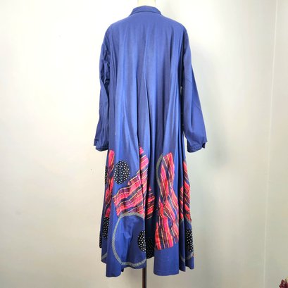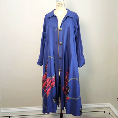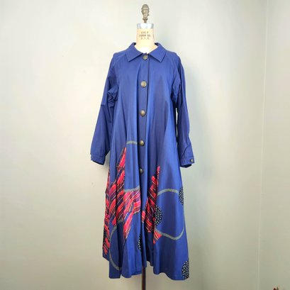 This piece is fabulous! Royal blue long coat with fantastic appliqué work. The work of NYC designer Koos Van Den Akker.