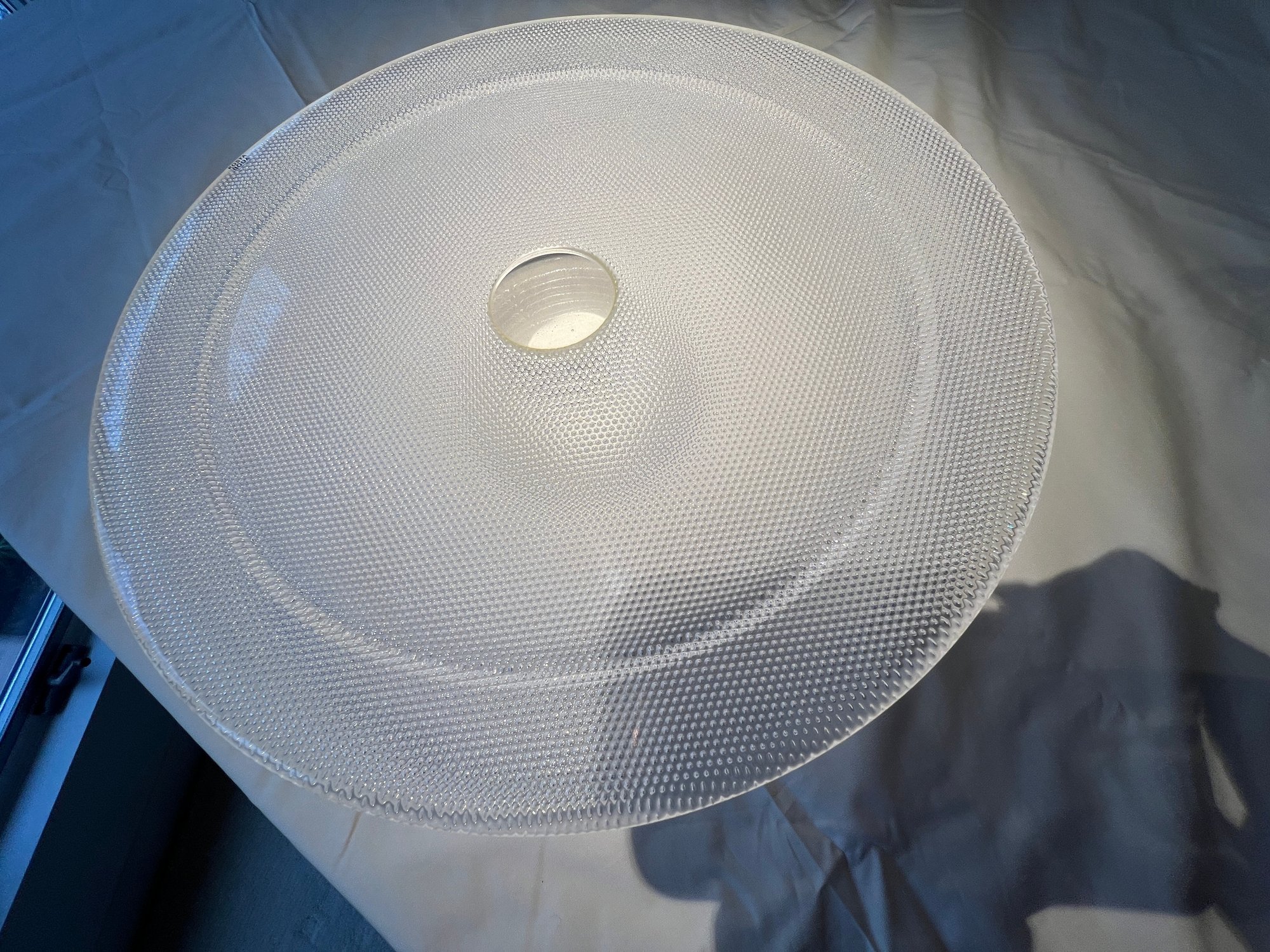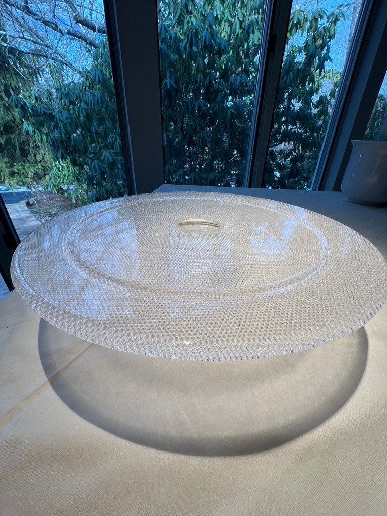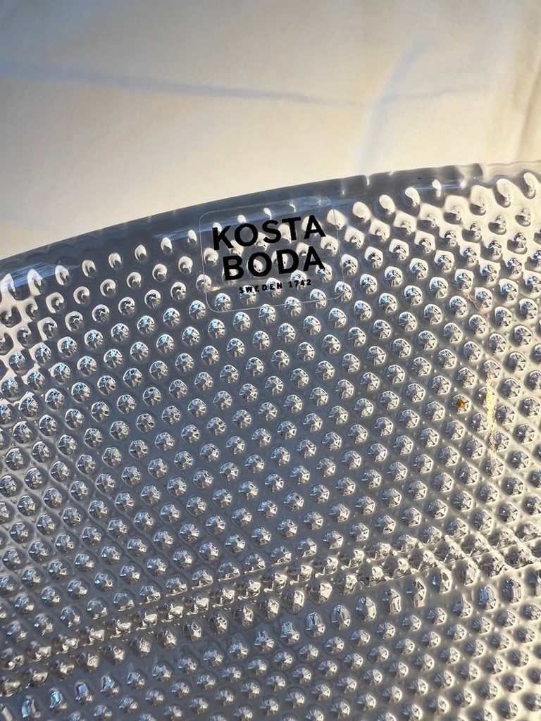 This is a Kosta Boda Limelight crystal art glass cake plate designed by Göran Wärff. In excellent condition, 12.5" w x 3"h
