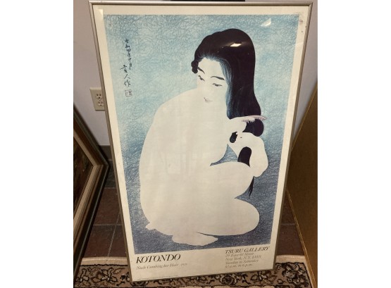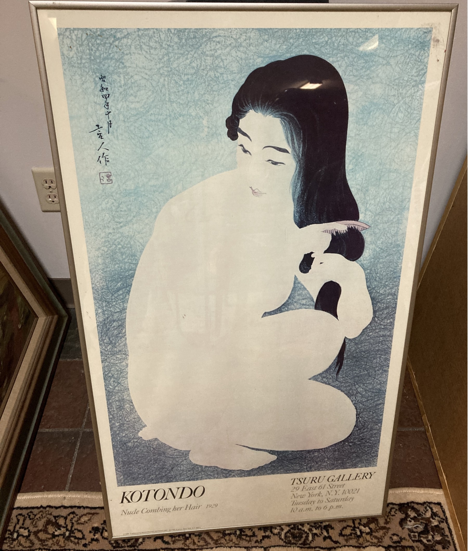 nice vintage gallery print, metal frame behind glass