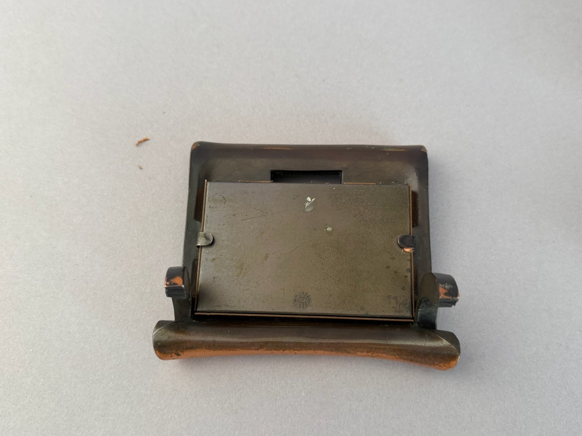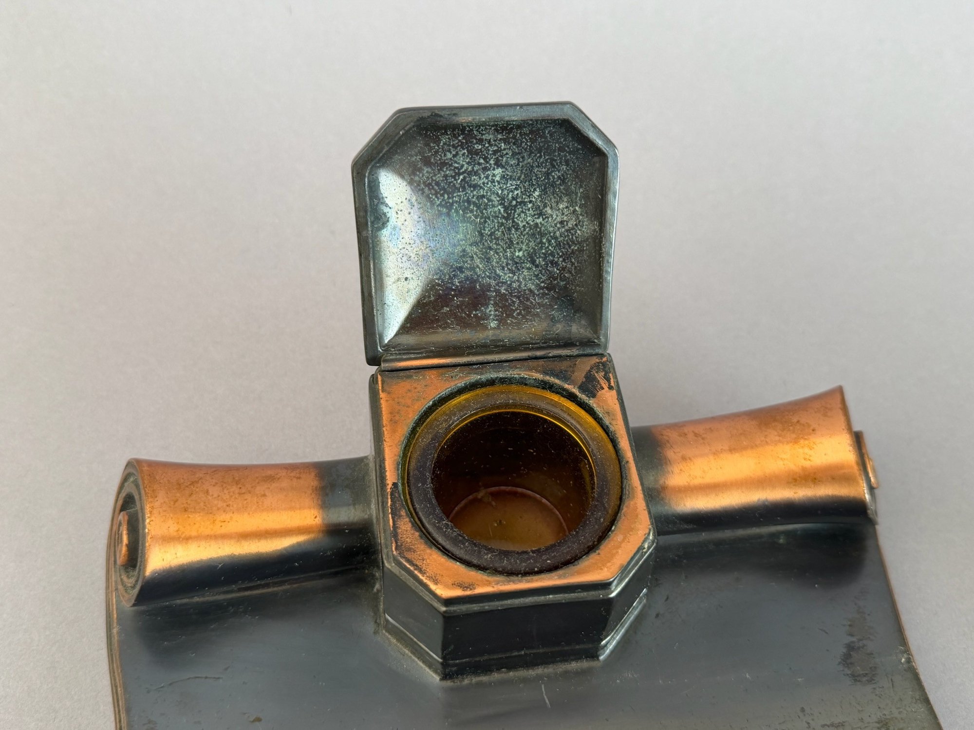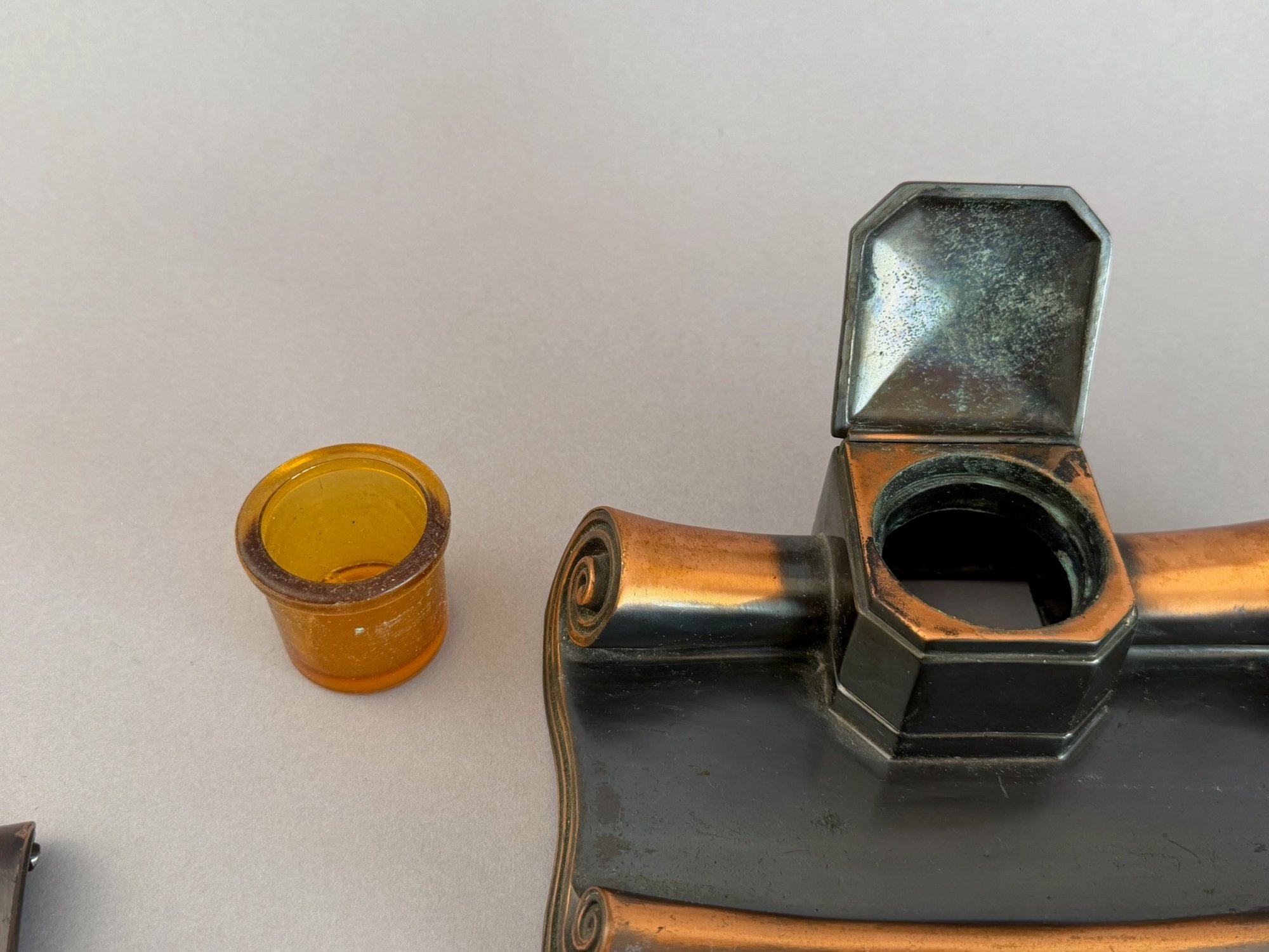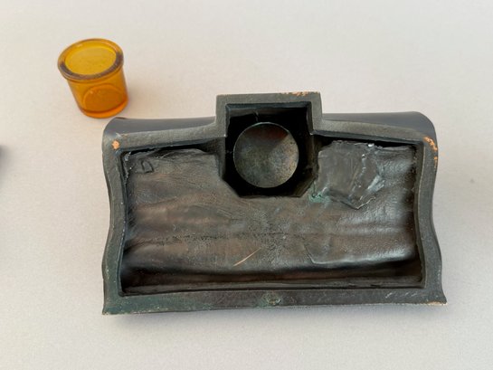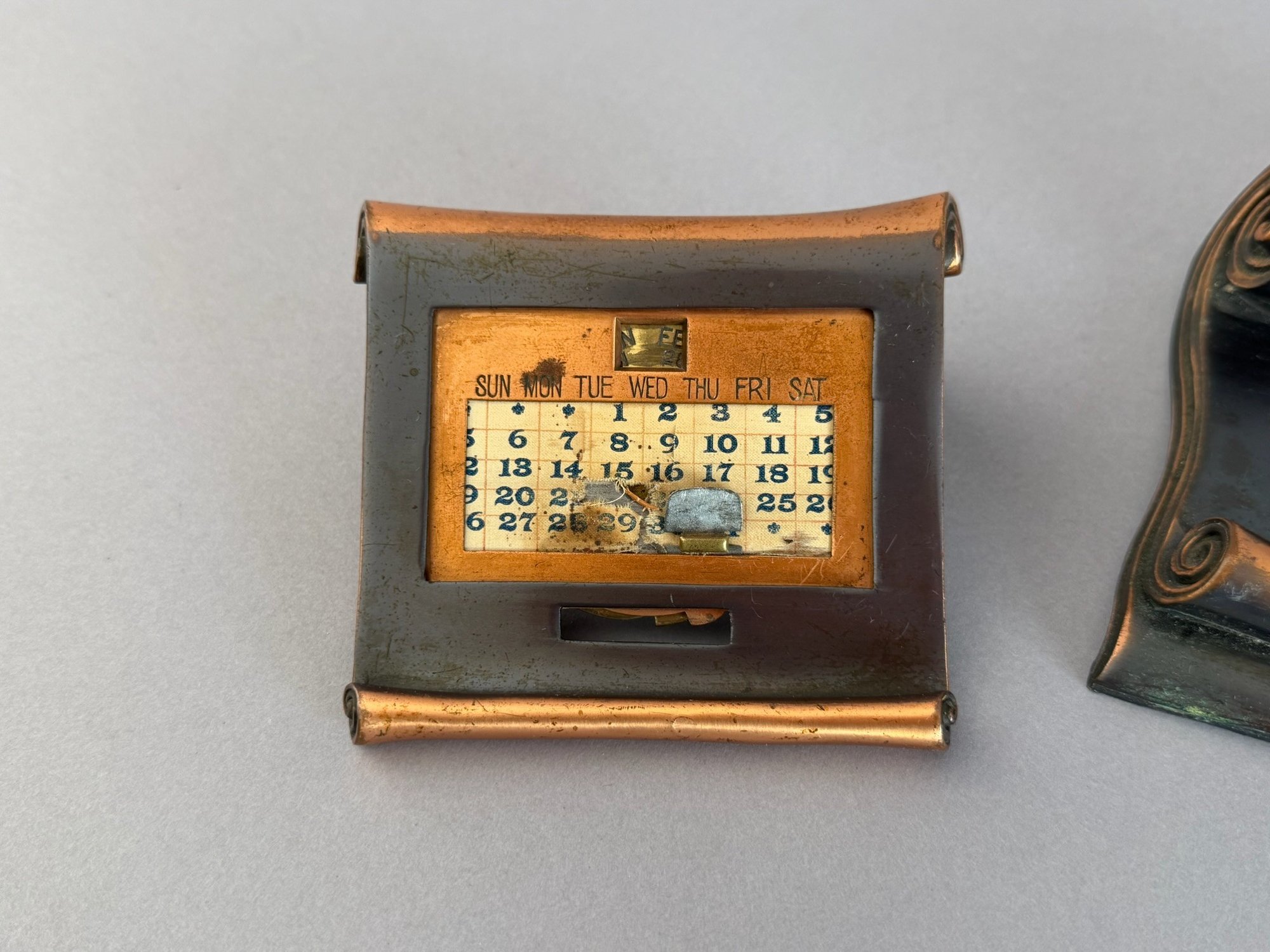 Includes inkwell, calendar and press. Inkwell measures 7" x 5".