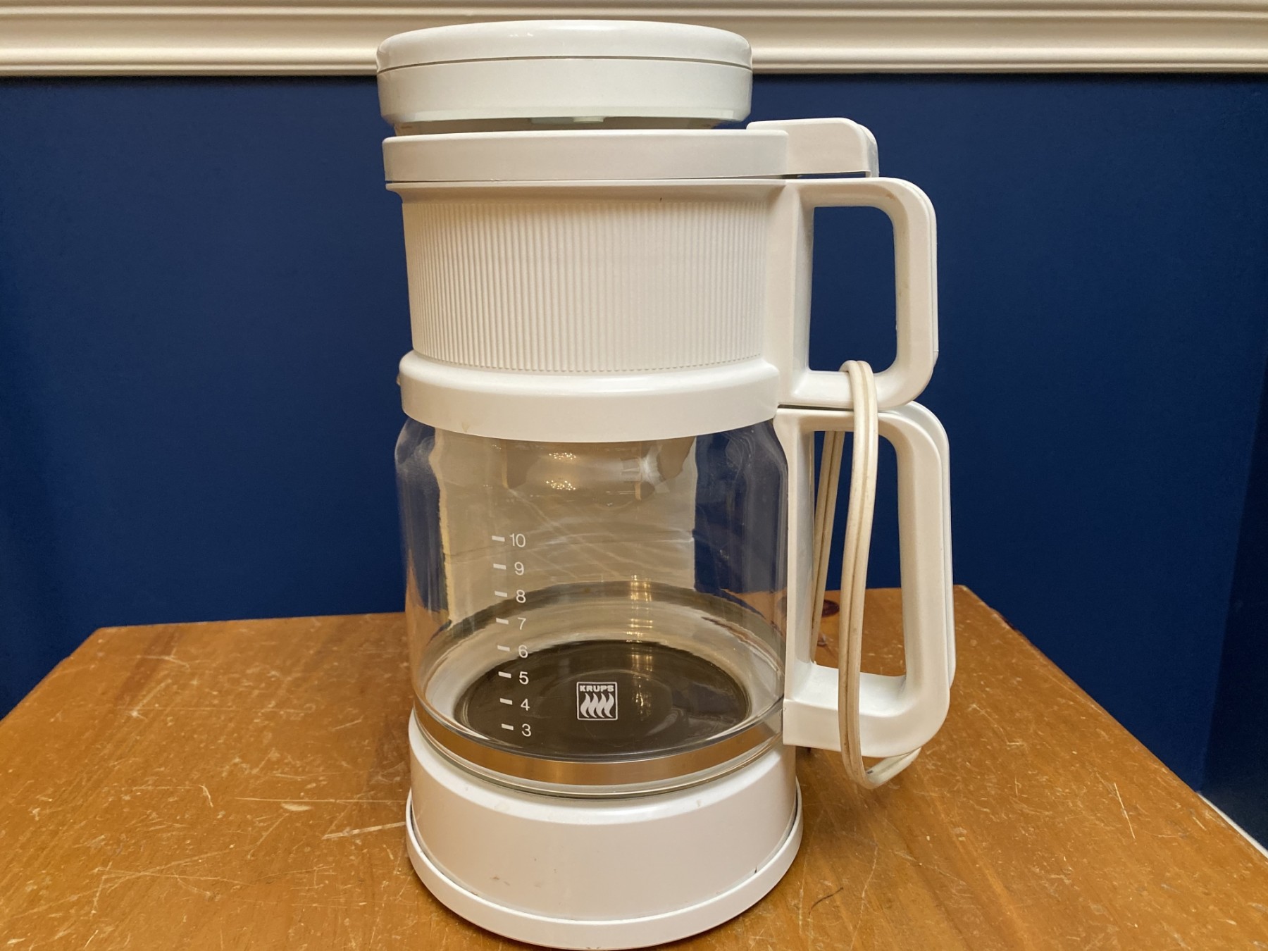 White, with 10-cup capacity. By Krups. Measures 12" high.
