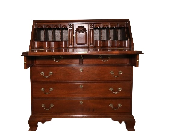 Desk with bold serpentine interior, 4 document drawers.