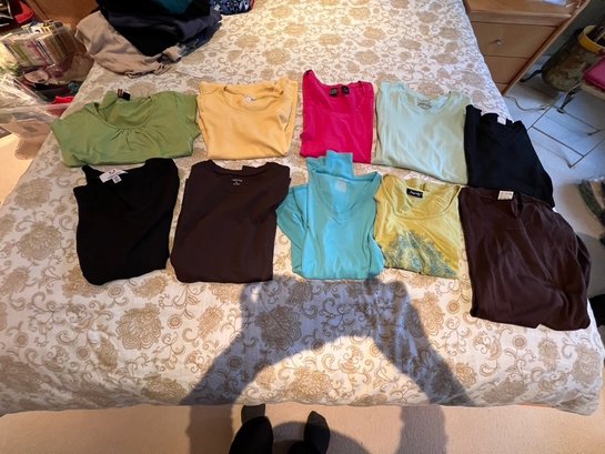 ladies long and short sleeve, multi color, and style, shirts for everyday wear, or under a jacket, size s-m