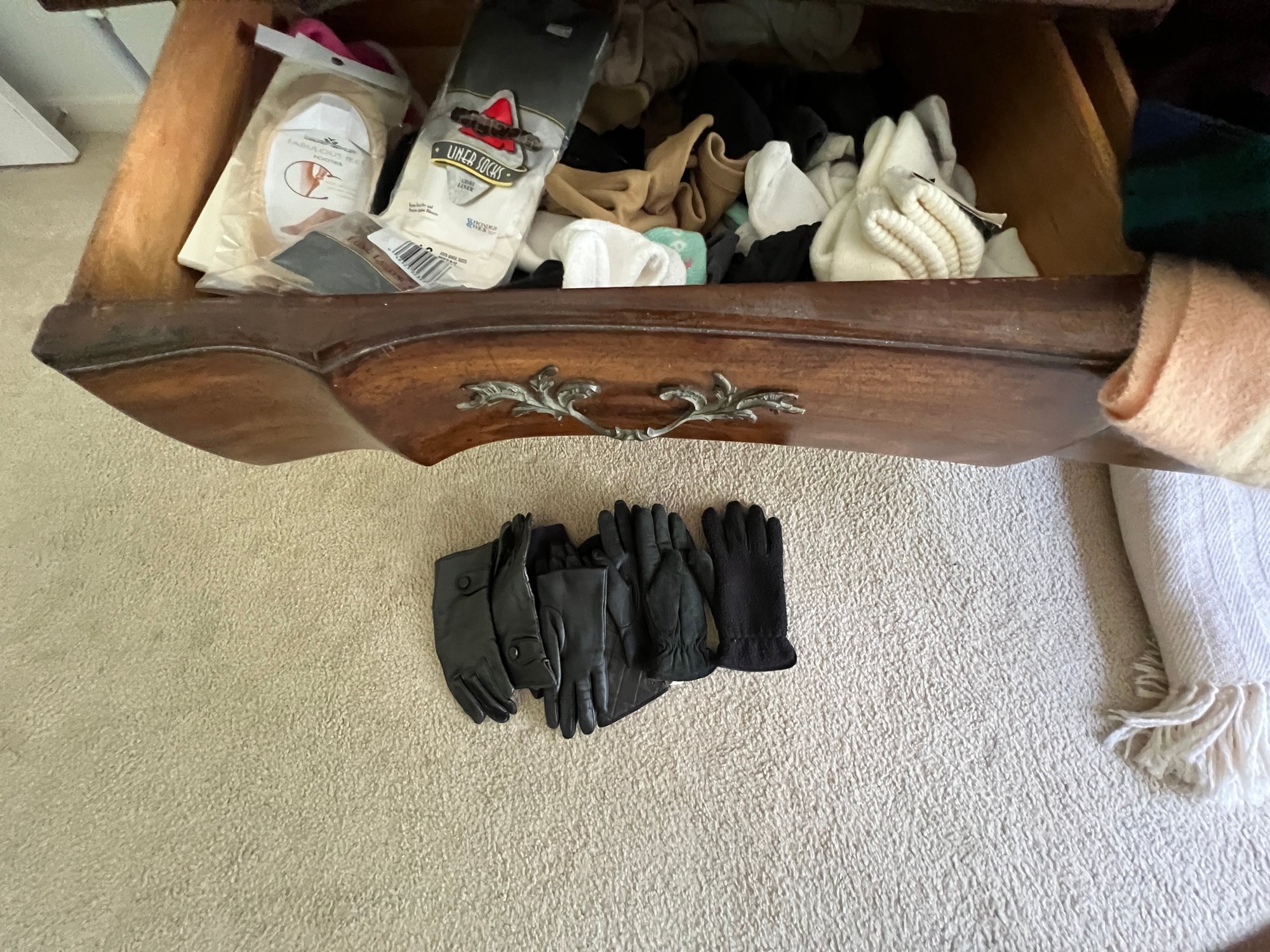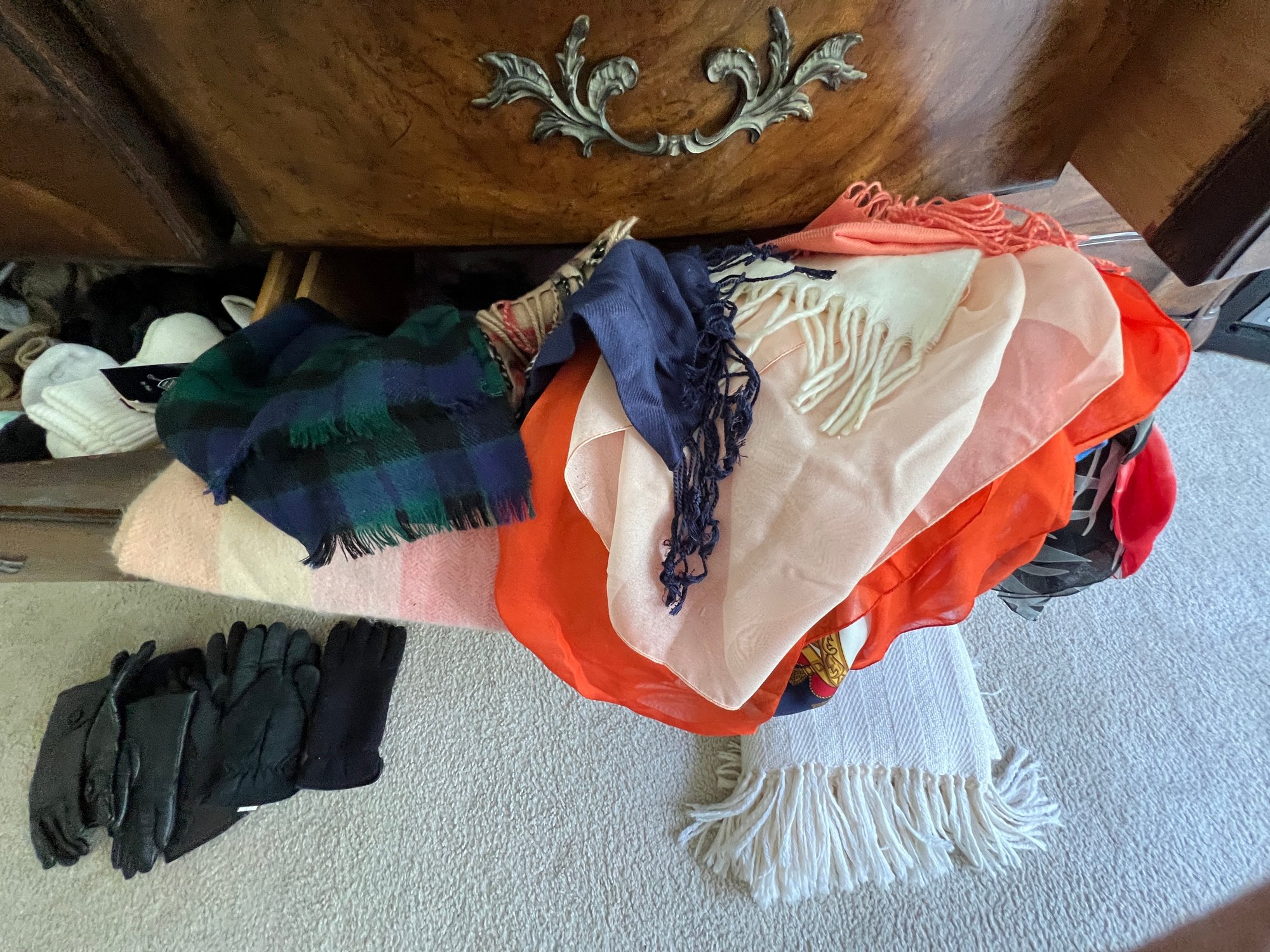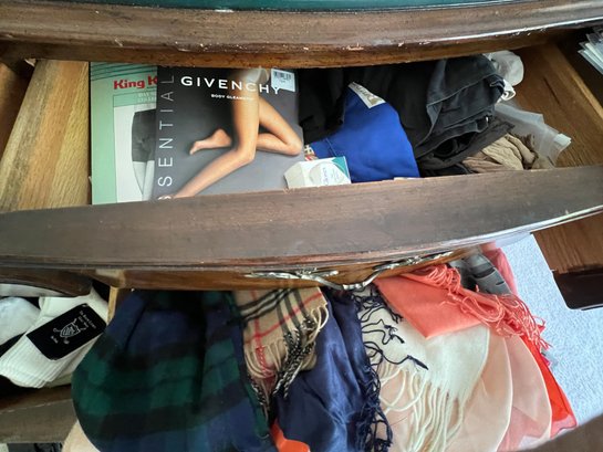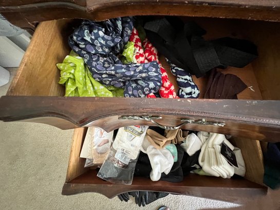 ladies sundries, scarves, gloves, nylons, cashmere, and blends, plus, plus, plus