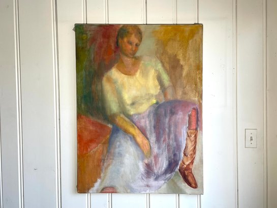 Lady in cowboy boots, oil on canvas.