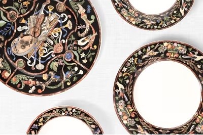 (11) 8.75" Plates (black with design)