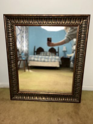 Large wall mirror with an antiqued gold finish frame featuring an egg and dart pattern.