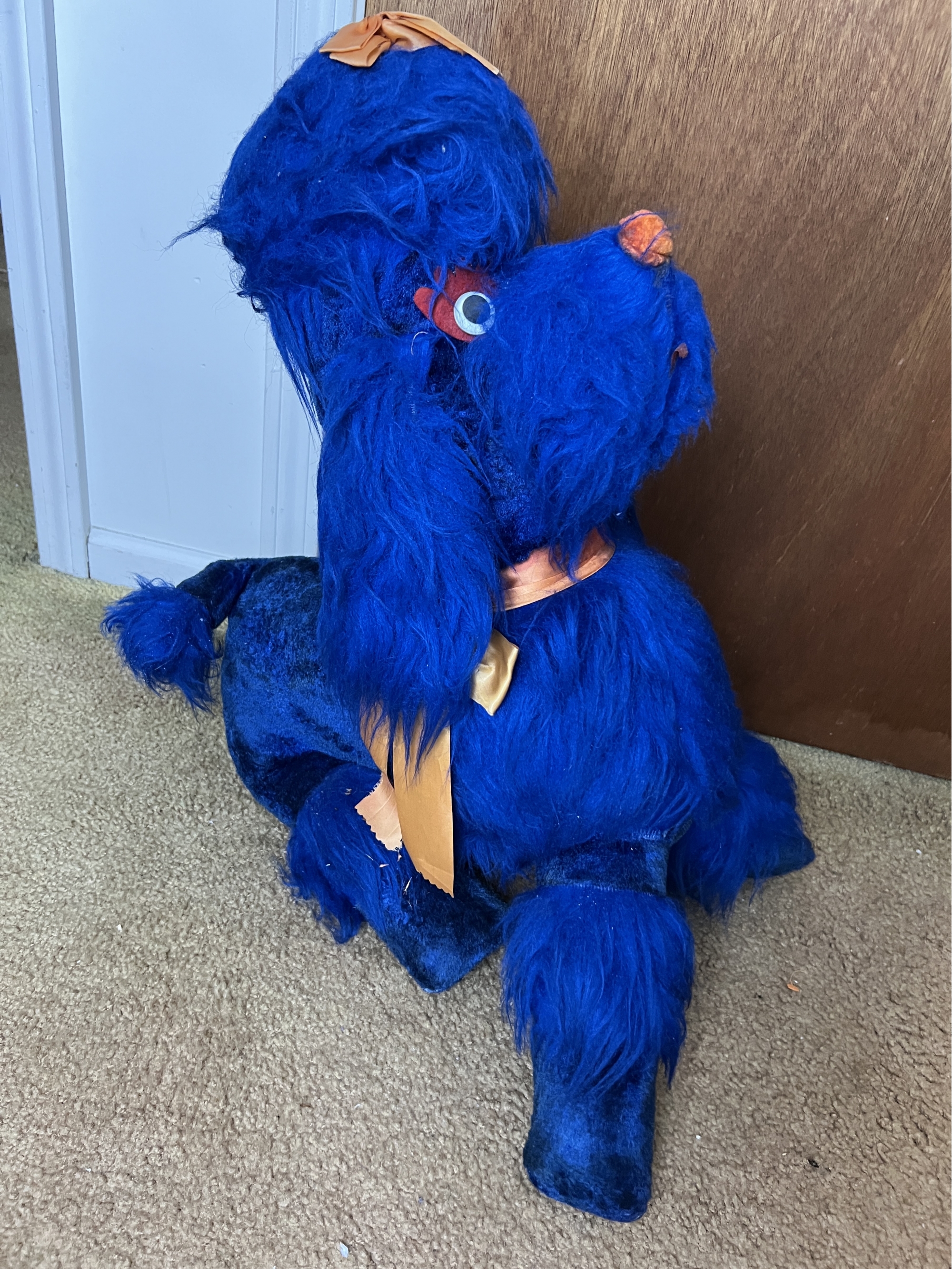 Too cute for the dumpster - a vintage blue stuffed poodle that looks like it was a fair prize from the 1960s.