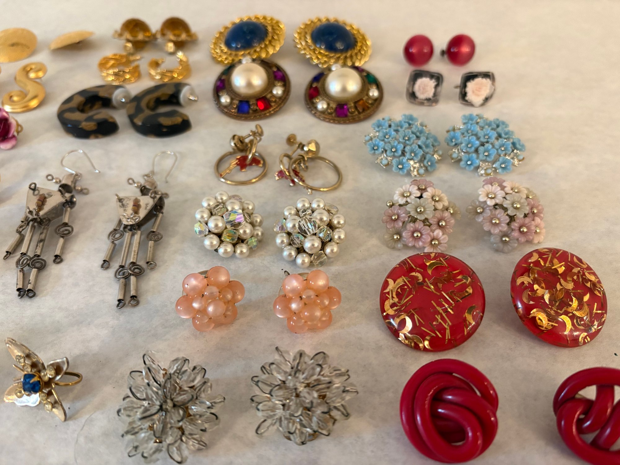 Collection of over 25 pairs of vintage fashion earrings.
