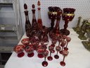 5 decanters, rare teapot, 6 glasses, 9 cordials