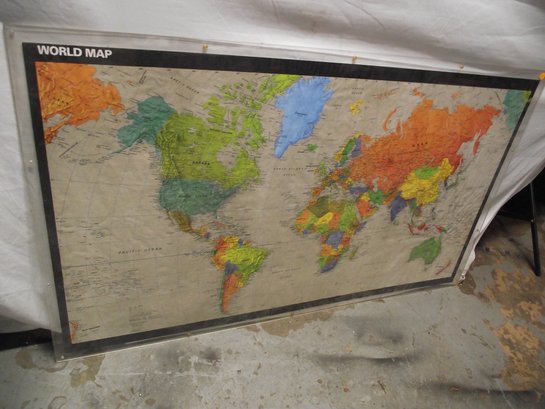 Large Encased World Map For Wall